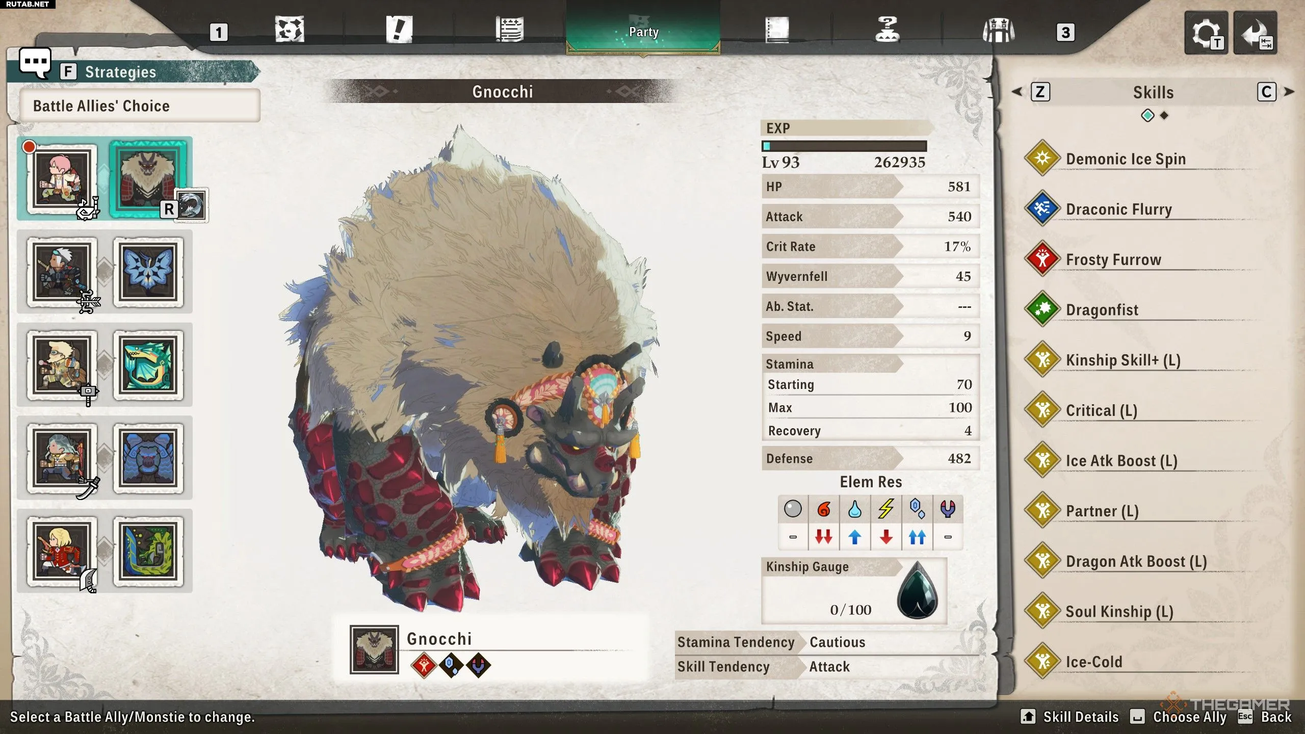 Хотя ни одно из оружий Теи не будет особенно эффективно против Яма Цуками, её монсти Ньокки — идеальный вариант, так как владеет стихиями Льда и Дракона.