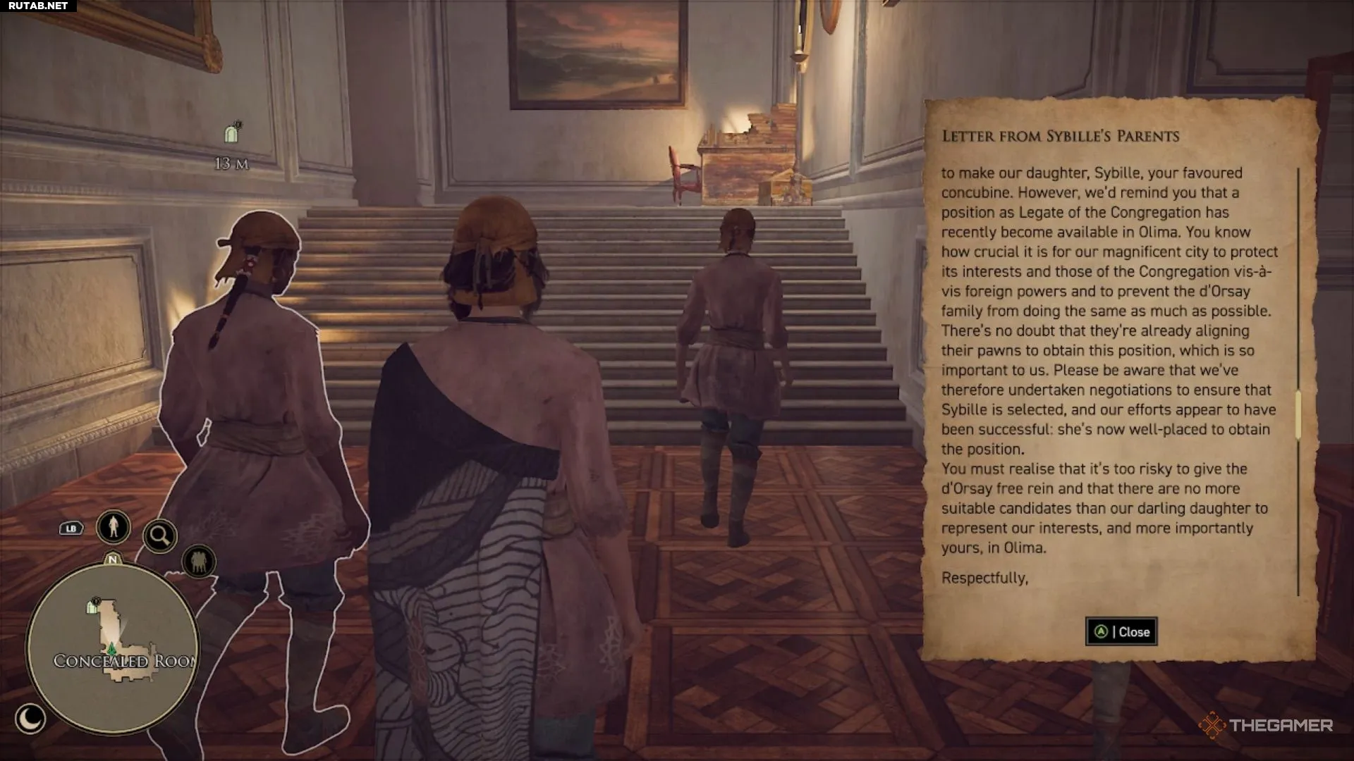 Если вы решили не отдавать письмо принцу, отправляйтесь в резиденцию семьи д’Орсе. Поговорите с господином д’Аржантоном о защите для Сибиллы. Когда речь зайдёт о компрометирующем документе, у вас снова будет выбор: