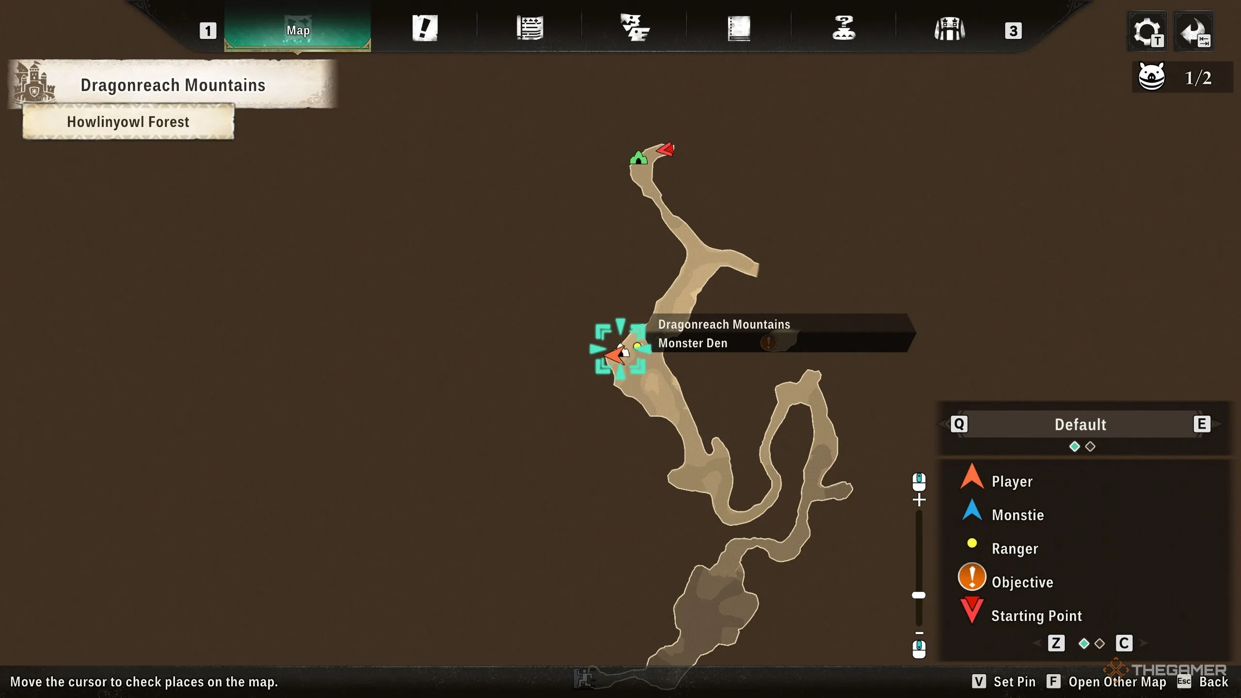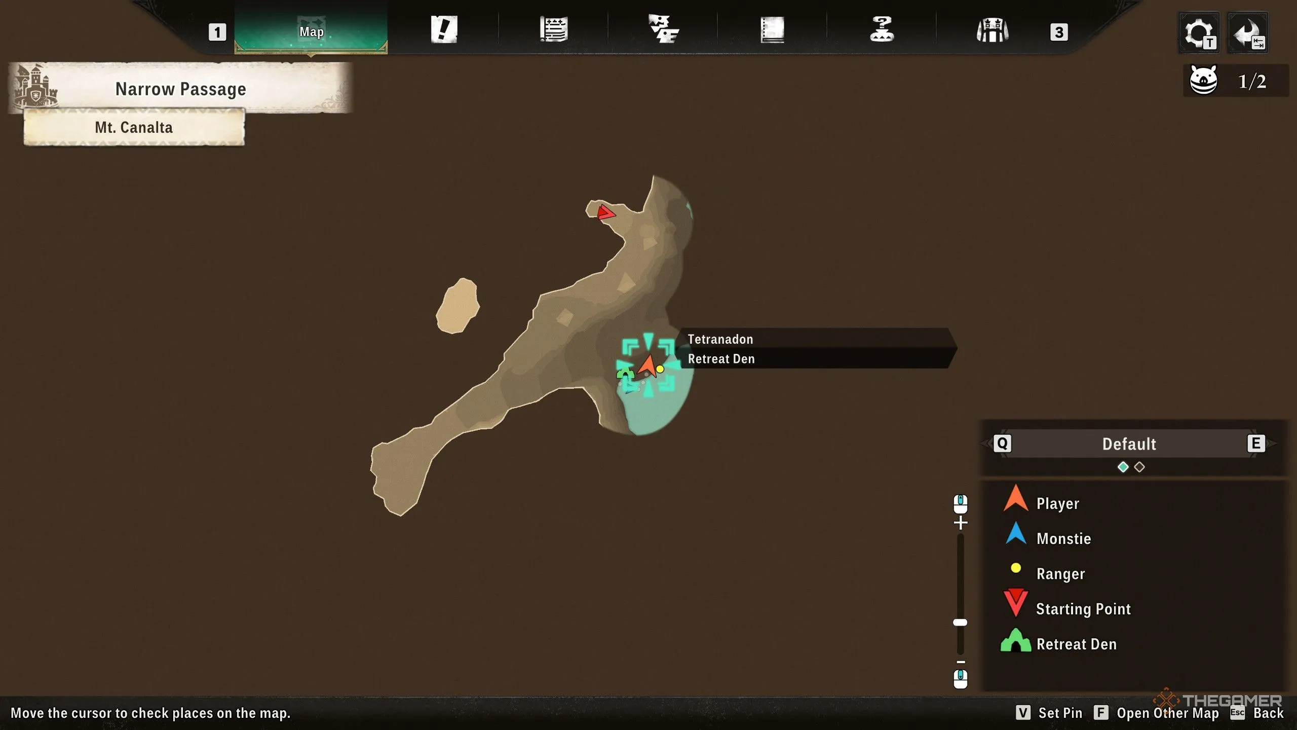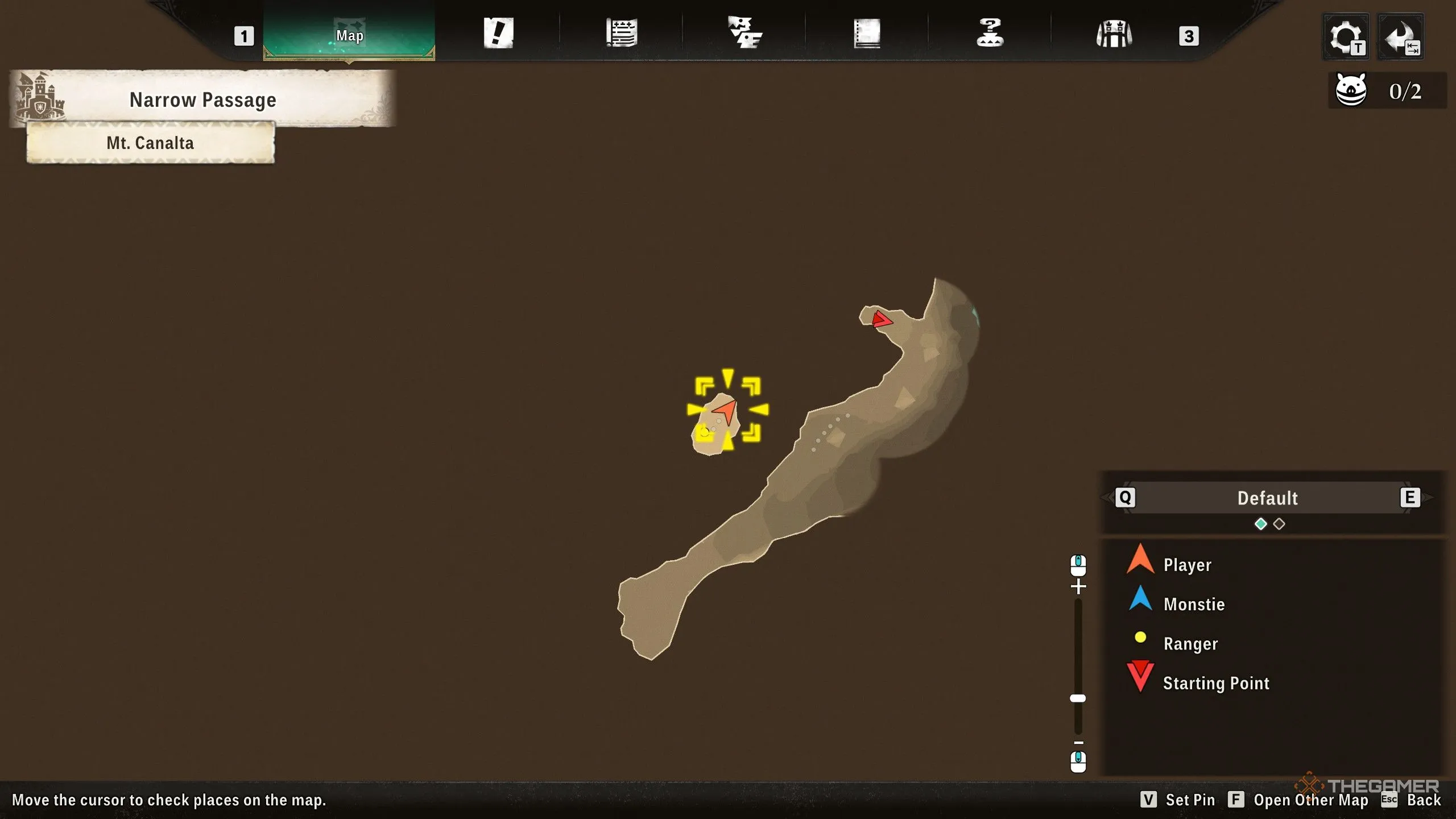 Находится у скального обрыва в регионе Горы Каналта, к северо-западу от области на карте, обведённой светло-коричневым кольцом.