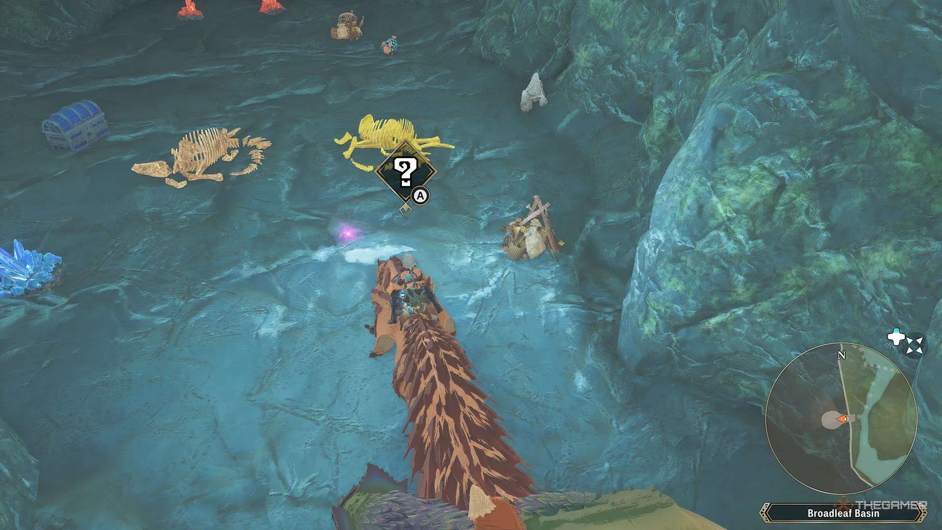 Раздутый горловой мешок (след Паолуму)Находится в круглой самой северной области в центре карты, к западу от стоянки Каравана кошек «Пепельный перевал: горный склон». |