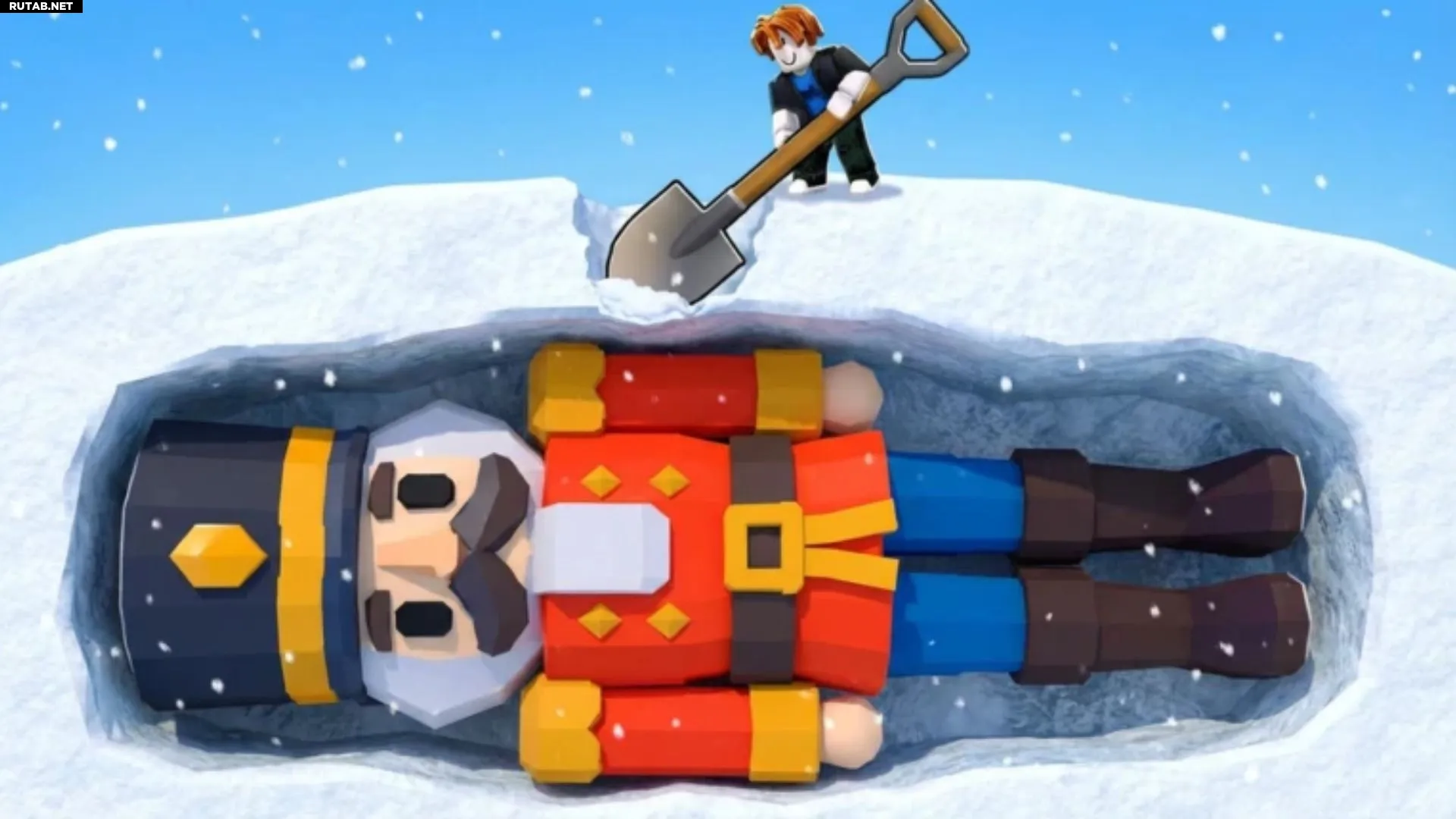 - Запустите игру Shovel It в Roblox и дождитесь загрузки снежного мира.