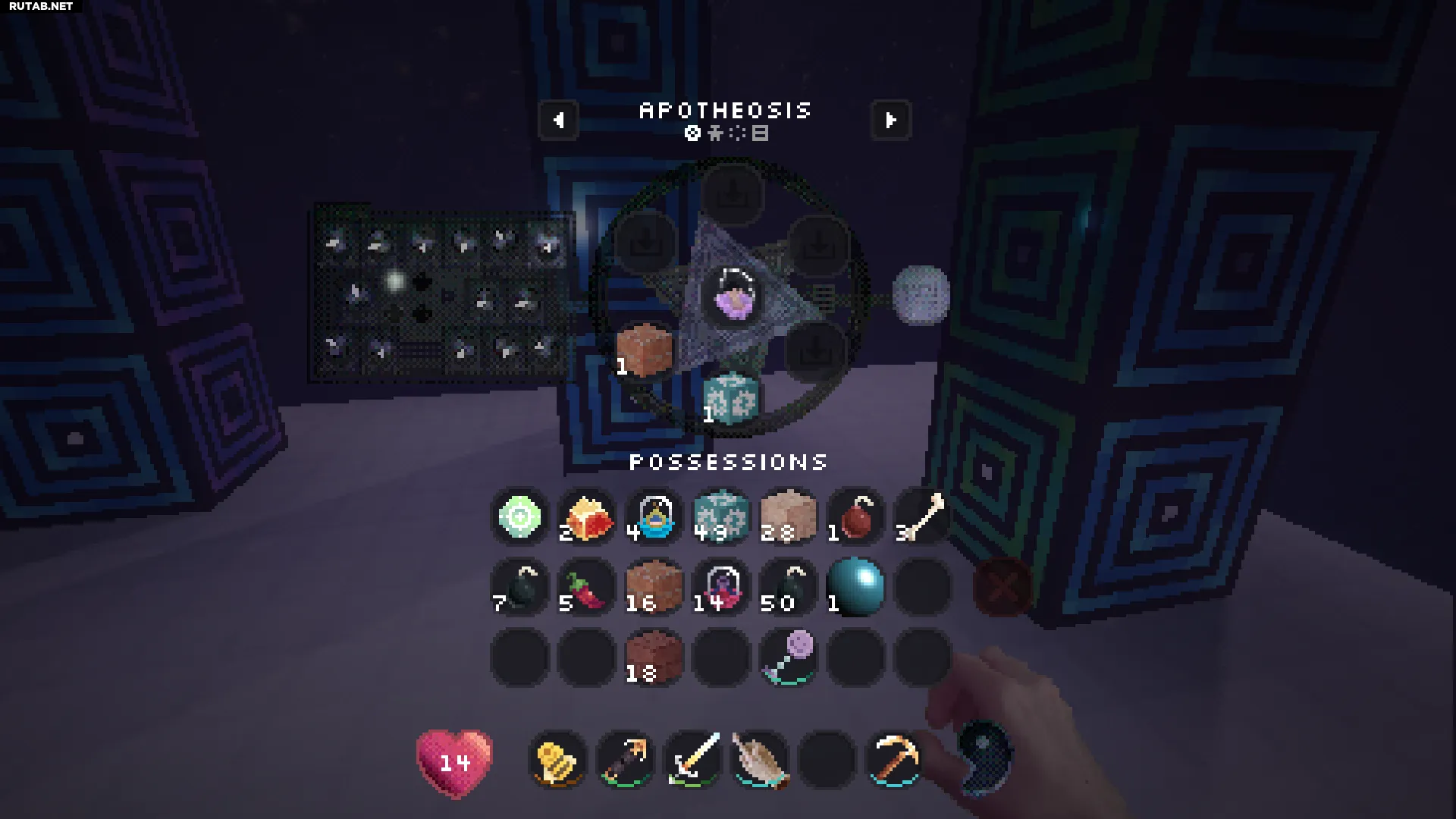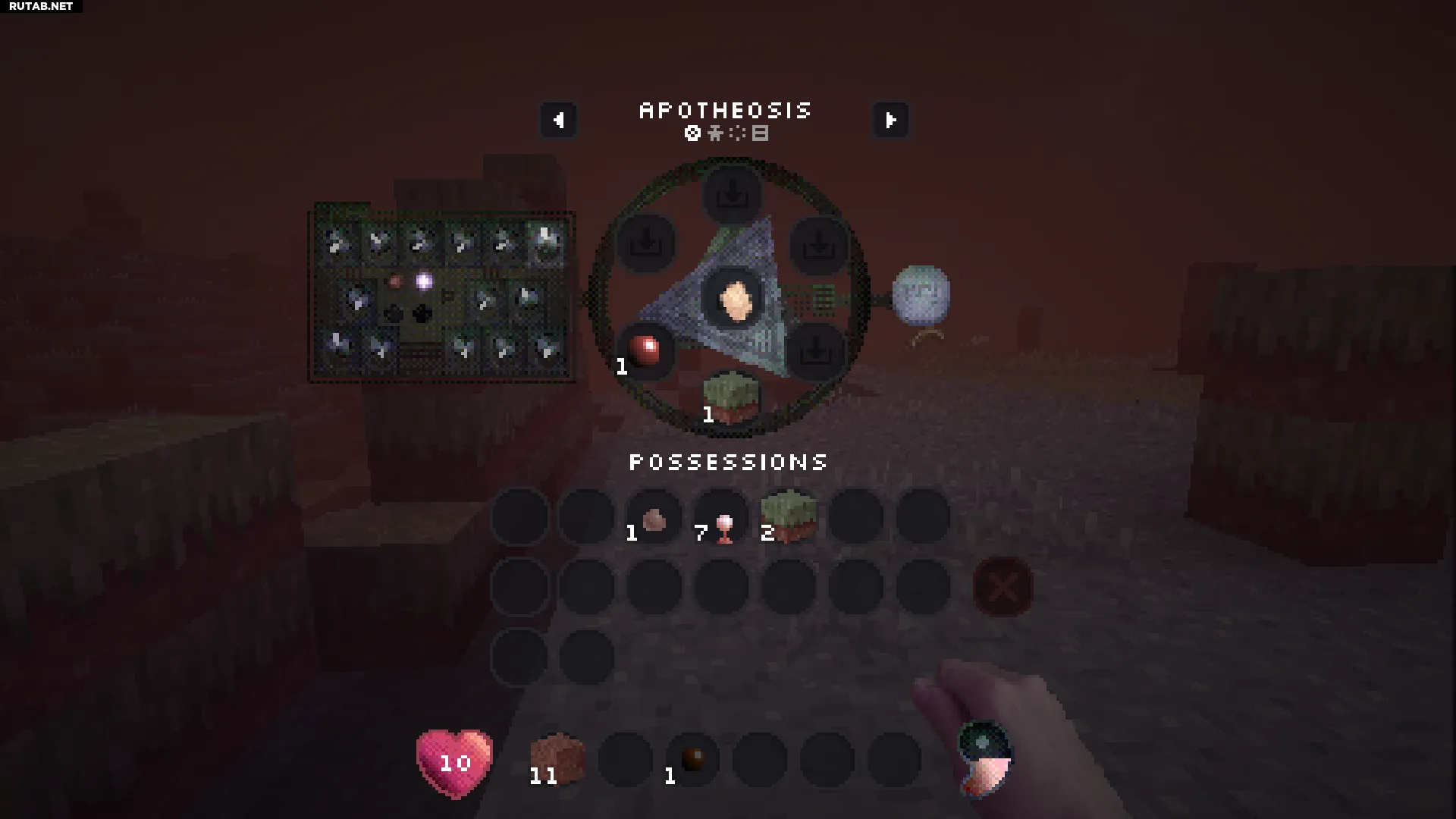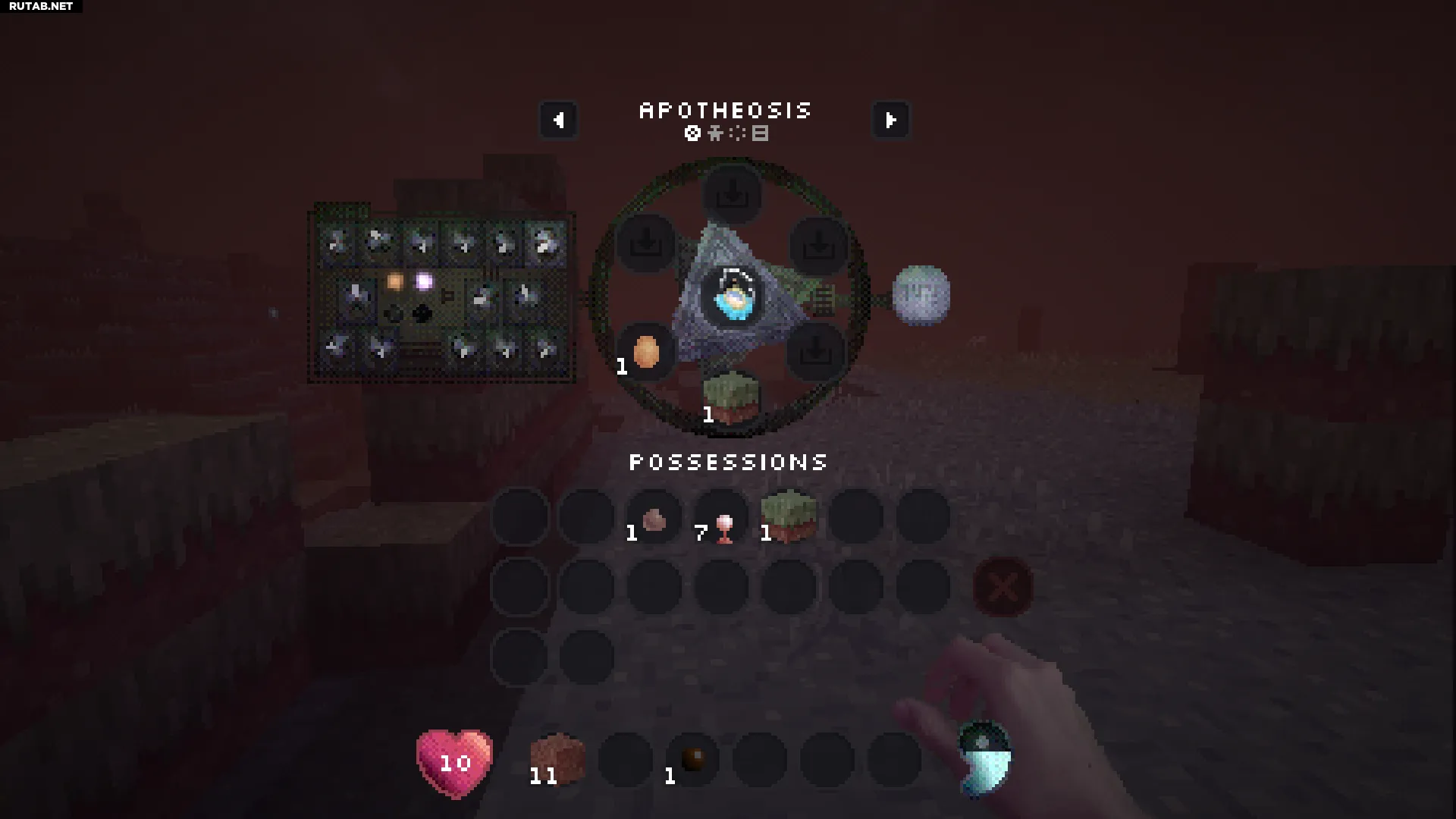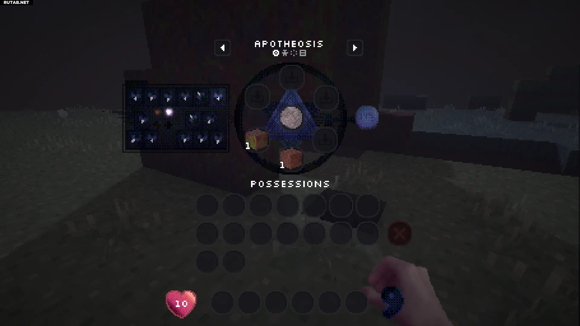 Нажатие правой кнопкой мыши на этот блок позволит вам войти в вашу личную квалиа (похоже на карманное измерение). Это отличное место, чтобы безопасно сажать и управлять всеми вашими семенами.