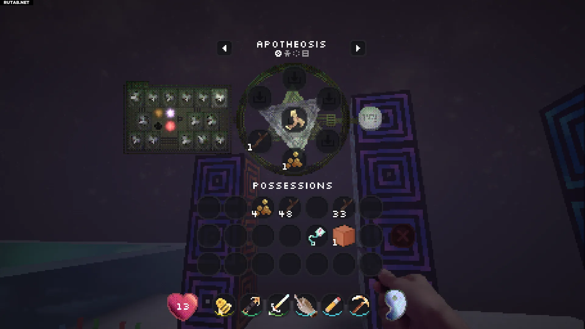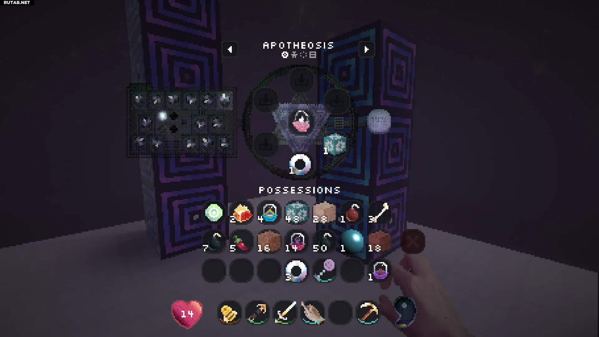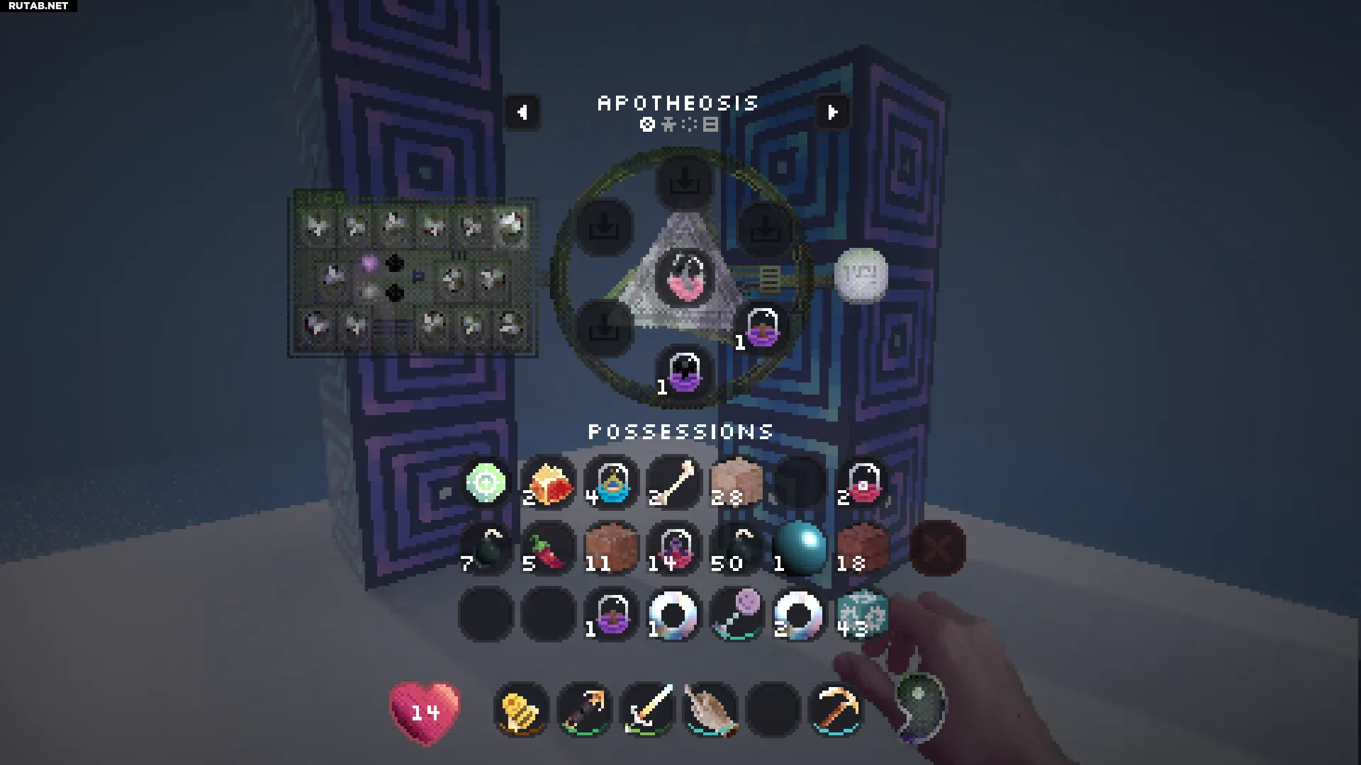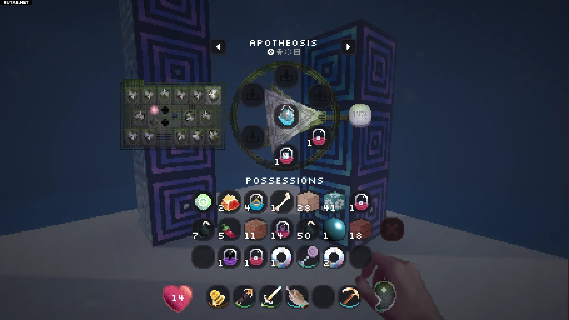 Нажатие правой кнопкой мыши на этот блок позволит вам войти в вашу личную квалиа (похоже на карманное измерение). Это отличное место, чтобы безопасно сажать и управлять всеми вашими семенами.