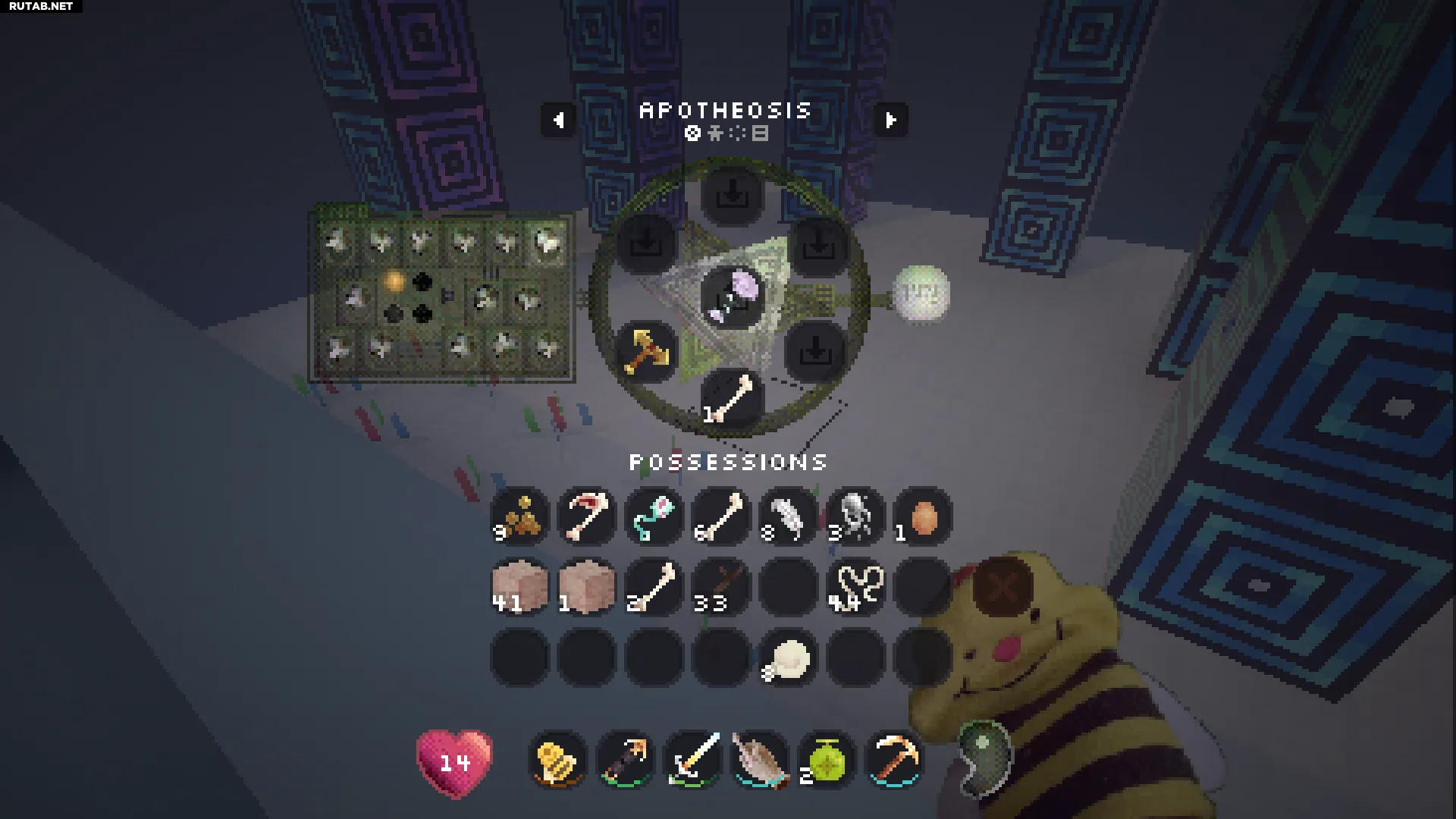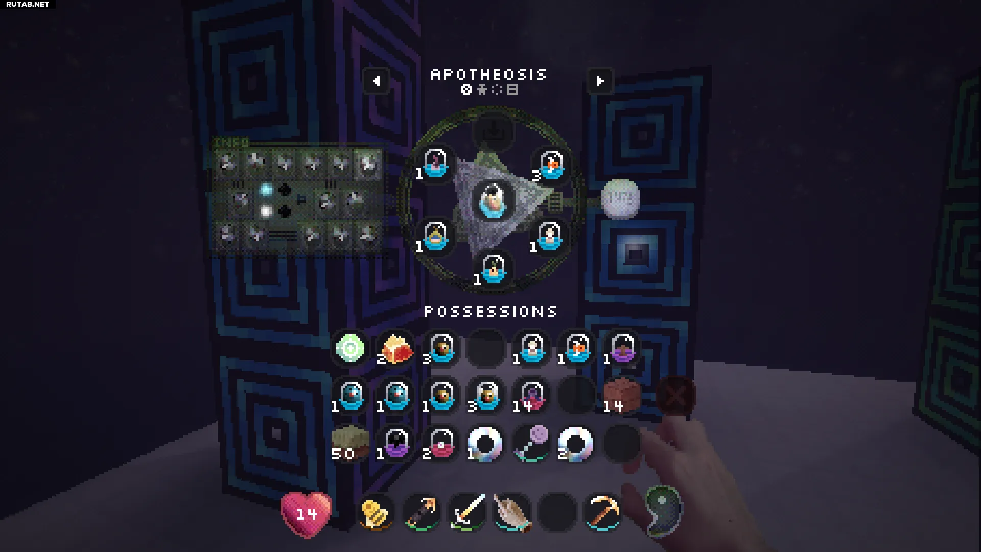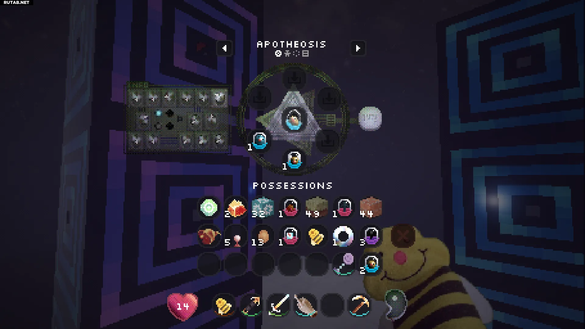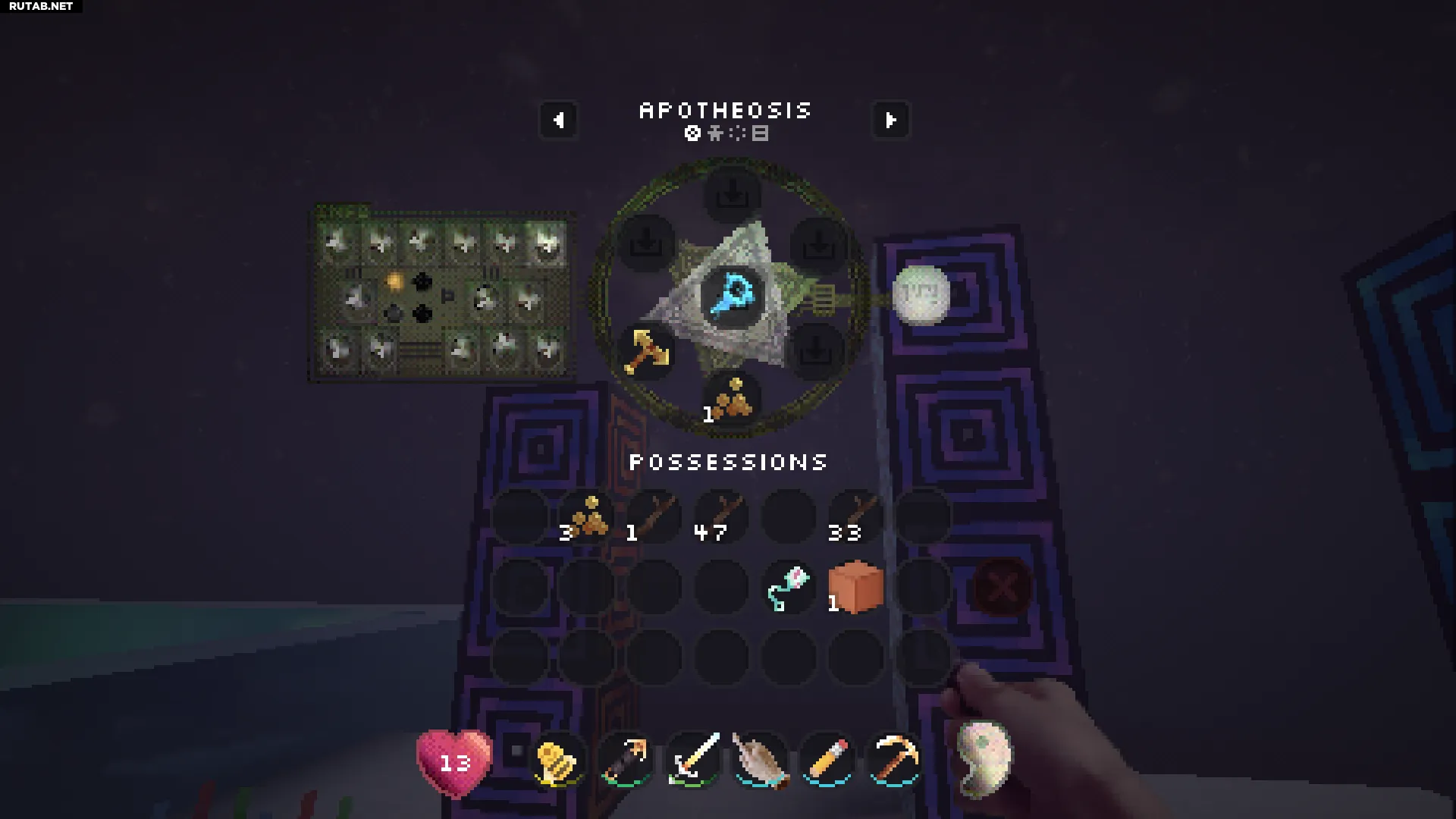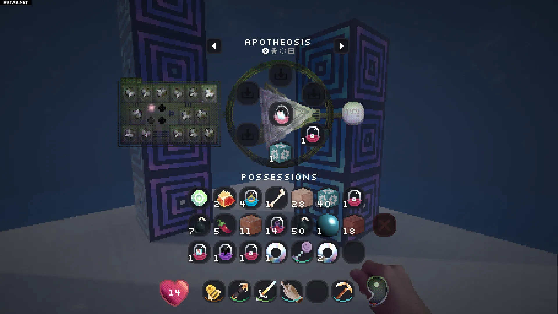 Нажатие правой кнопкой мыши на этот блок позволит вам войти в вашу личную квалиа (похоже на карманное измерение). Это отличное место, чтобы безопасно сажать и управлять всеми вашими семенами.