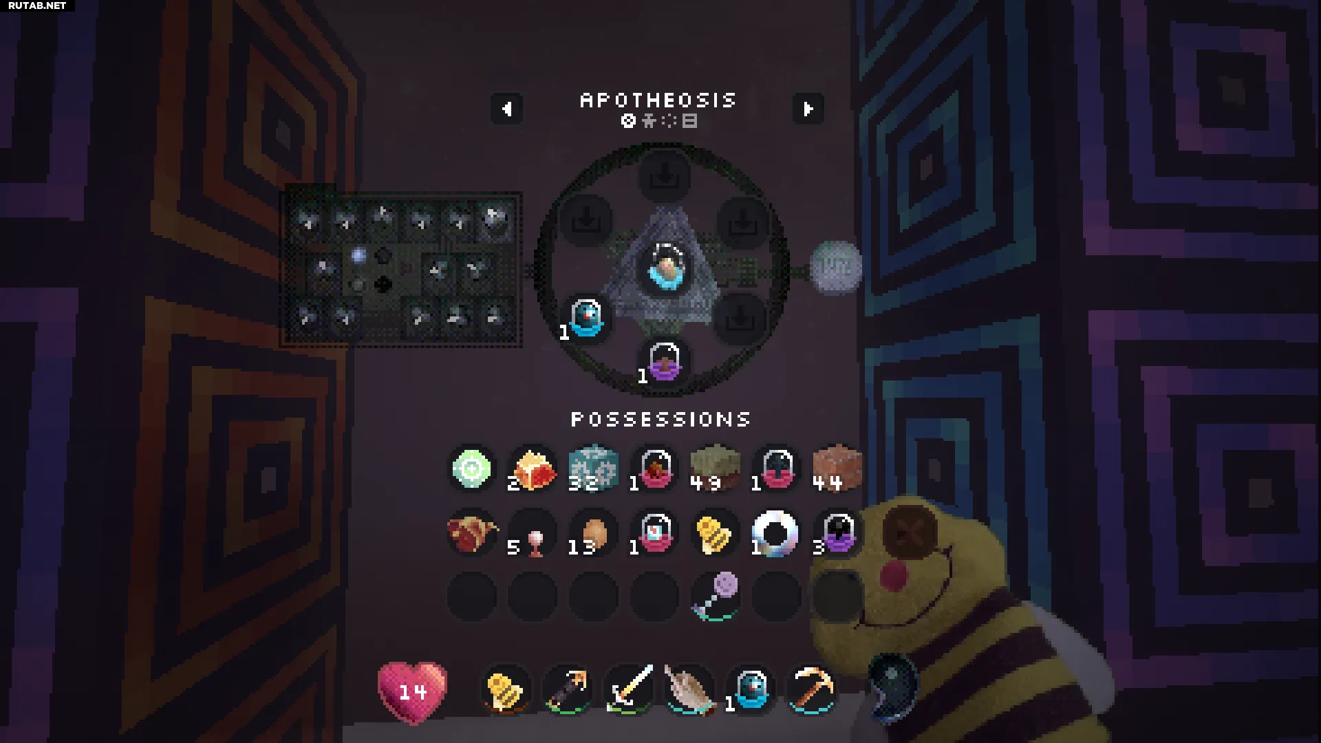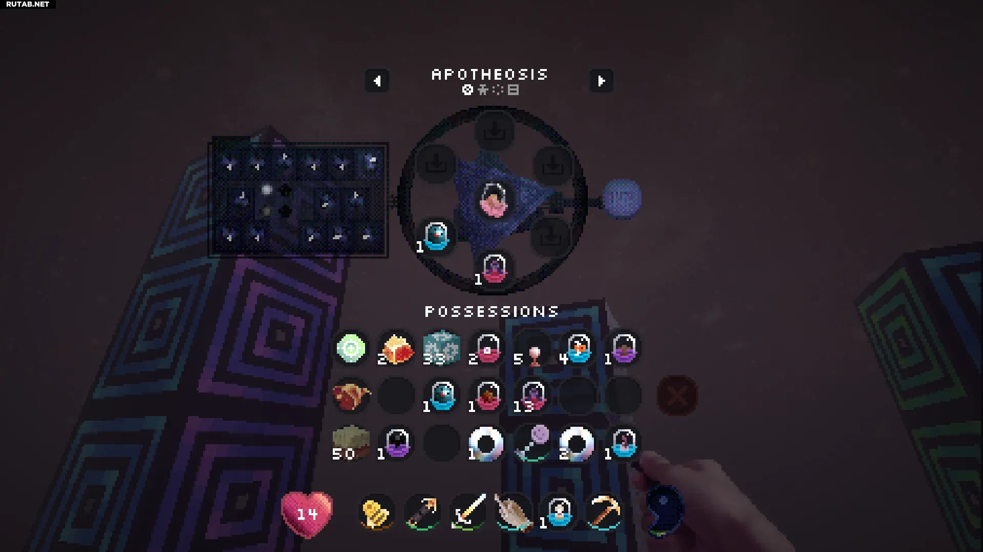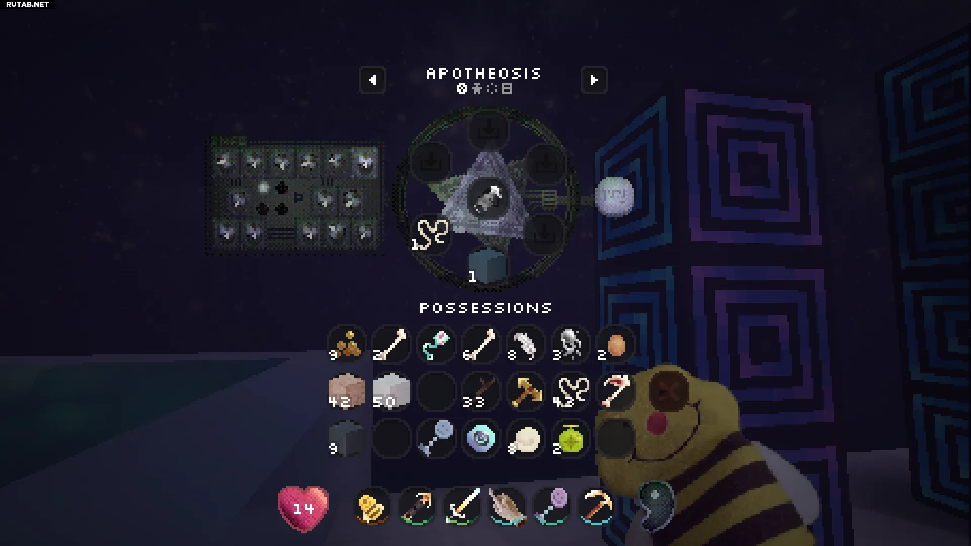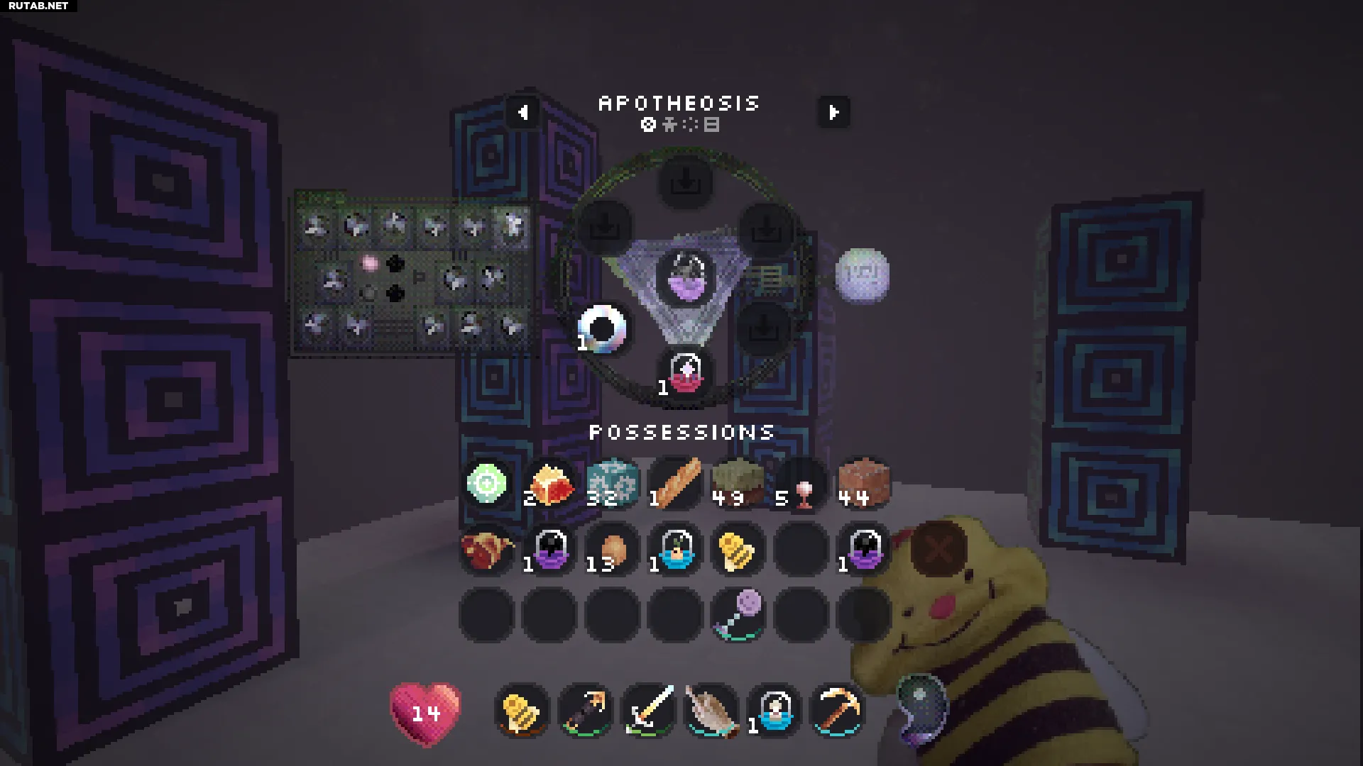 Нажатие правой кнопкой мыши на этот блок позволит вам войти в вашу личную квалиа (похоже на карманное измерение). Это отличное место, чтобы безопасно сажать и управлять всеми вашими семенами.