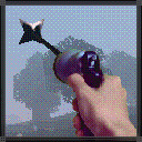 - Держите крюк-кошку в руке.