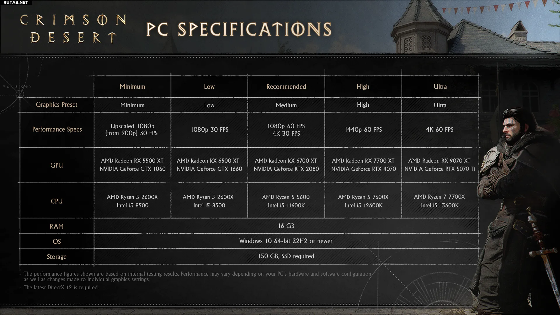 Если вы не уверены, что ваша система полностью соответствует игре, вот минимальные системные требования для Crimson Desert: