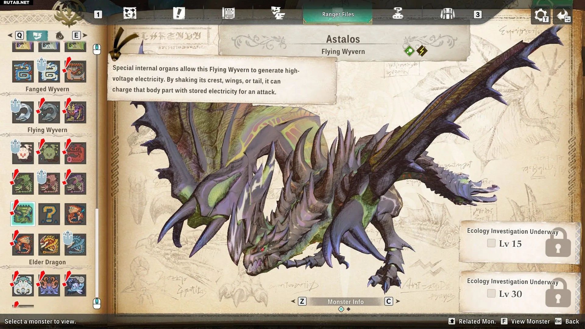 Как и Лагиакрус, Асталос считается исчезающим видом. Чтобы восстановить его популяцию, найдите и прогоните захватчика-Серегиоса возле той же пещеры, где был Плезиот. Вместо того чтобы заходить внутрь, оседлайте летающего зверя и воспользуйтесь восходящими потоками над озером, чтобы достичь вершины высокой скалы на северо-западе. Там вы найдете захватчика-Серегиоса. После его изгнания откроется доступ к яйцу Асталоса.