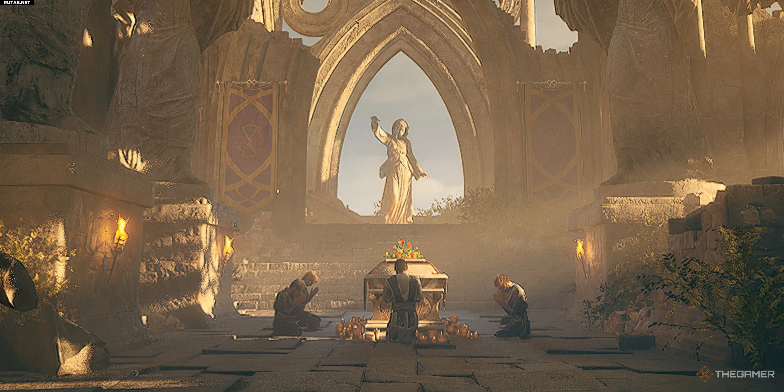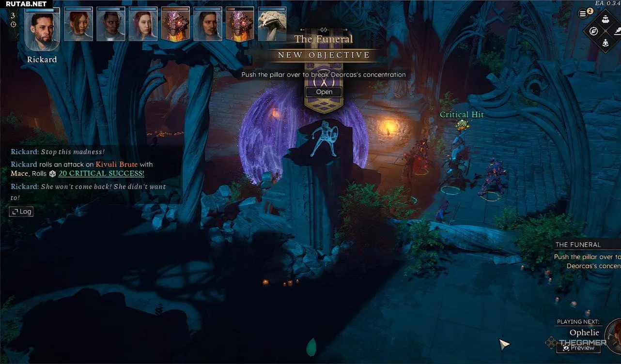 Во время битвы Рикард скажет вам обрушить колонну позади Деоркас. Особо проворный персонаж может срезать путь, перепрыгнув через другую упавшую колонну. Остальным придется идти в обход по территории похорон мимо статуи Марейк.