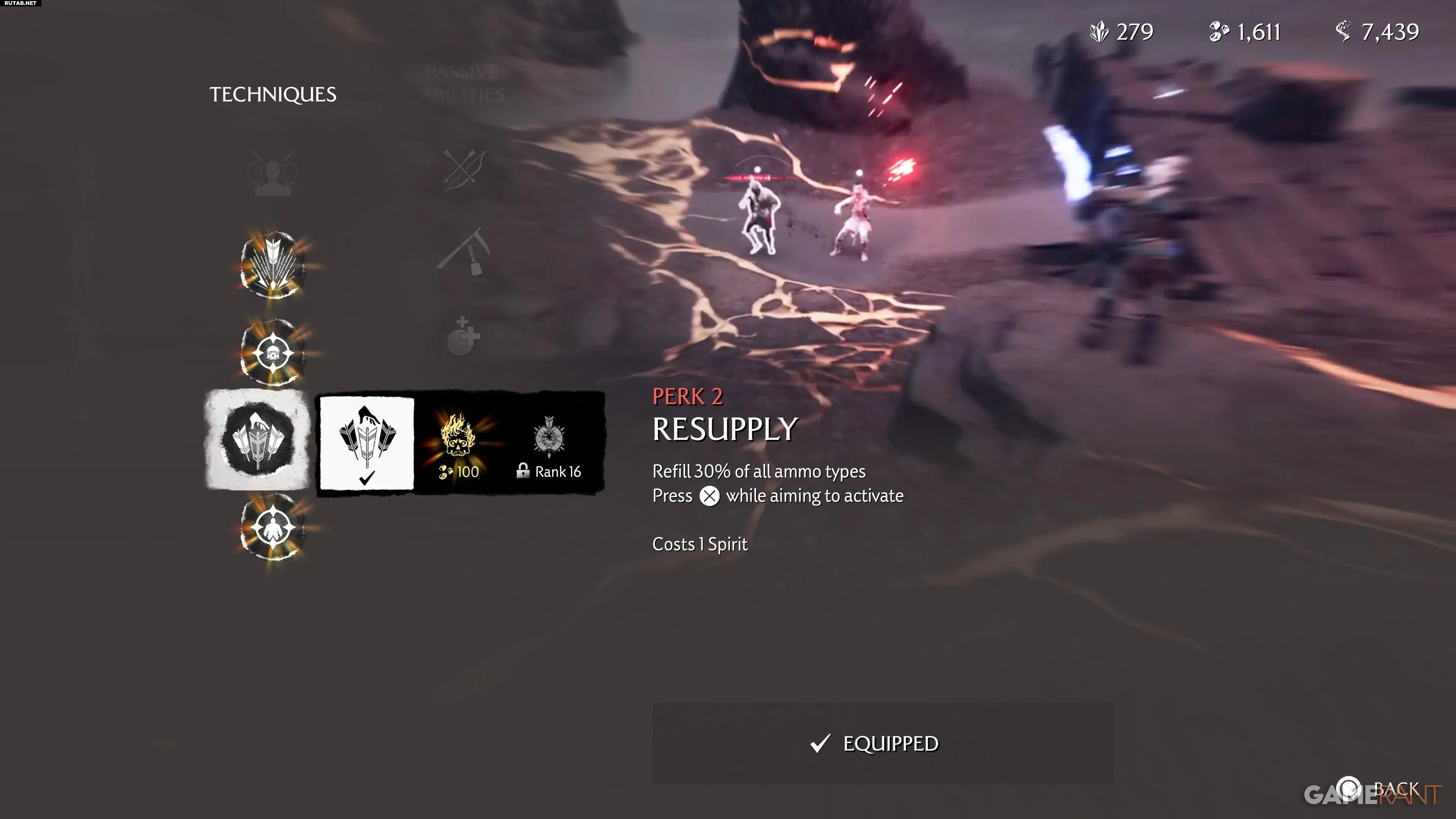 Среди перков обязательным является Пополнение, так как стрелы на поле боя не всегда доступны, особенно в длительных схватках. Возможность восстанавливать боеприпасы за счёт духа гарантирует стабильный урон. Сокращение времени восстановления способности — также сильный выбор для первого слота перков, позволяющий чаще использовать классовую способность.