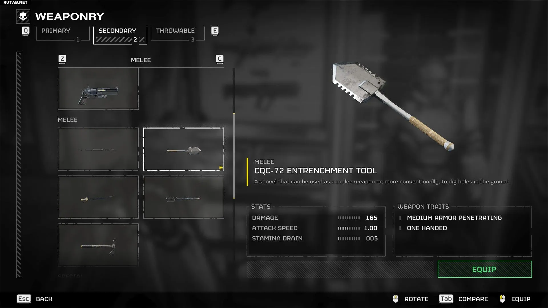 Инструмент для самоокапывания полностью оправдывает своё название — это складная лопата для слота вспомогательного оружия, которой можно рыть ямы в земле. Этот инструмент также особенно полезен против Автоматонов, поскольку большинство их юнитов используют дальнобойные атаки. Если вы оказались под шквальным огнём пулемётов, просто выройте укрытие, чтобы избежать попаданий.