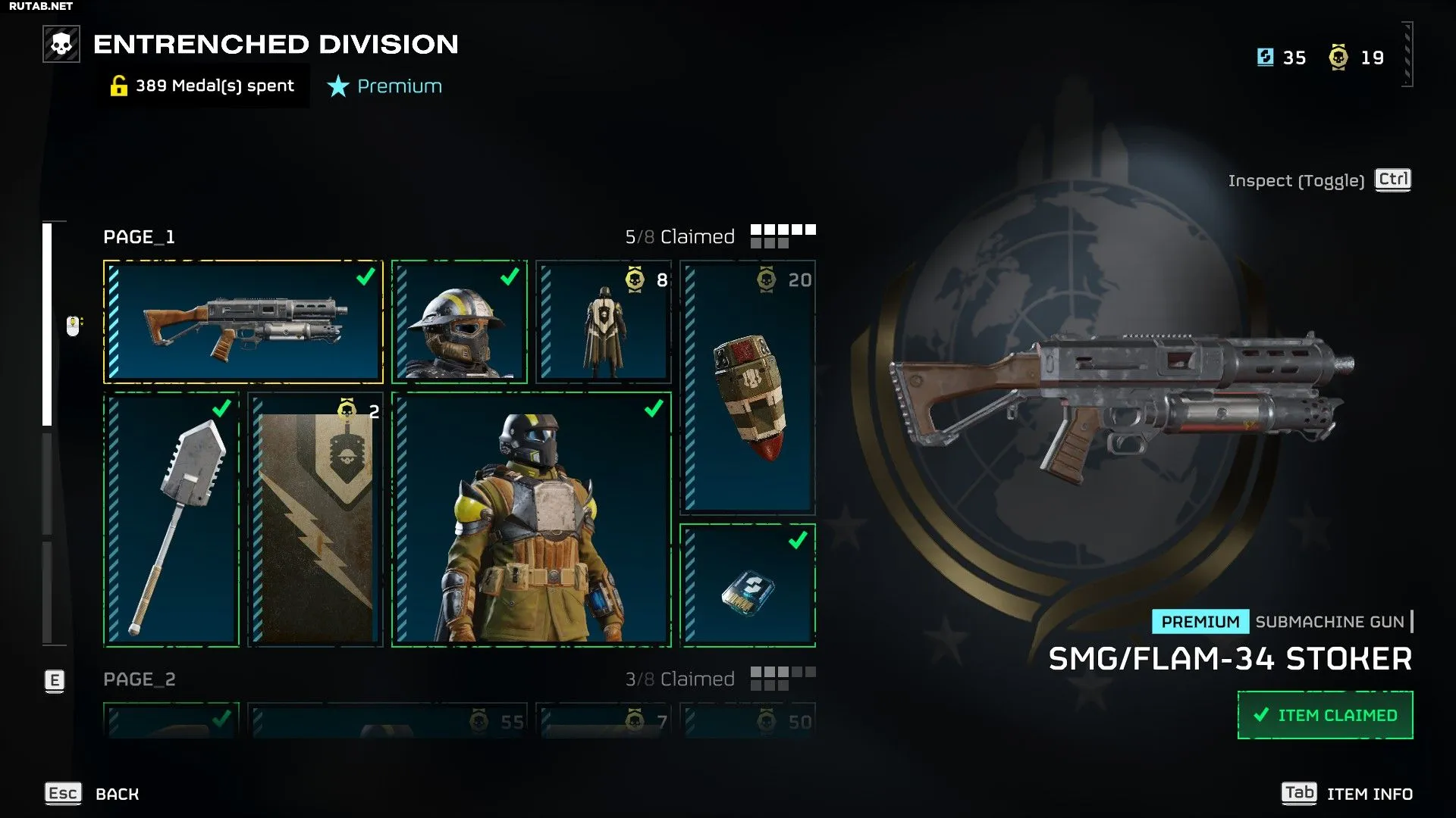 На второй странице варбонда «Укреплённая дивизия» можно приобрести следующие предметы: