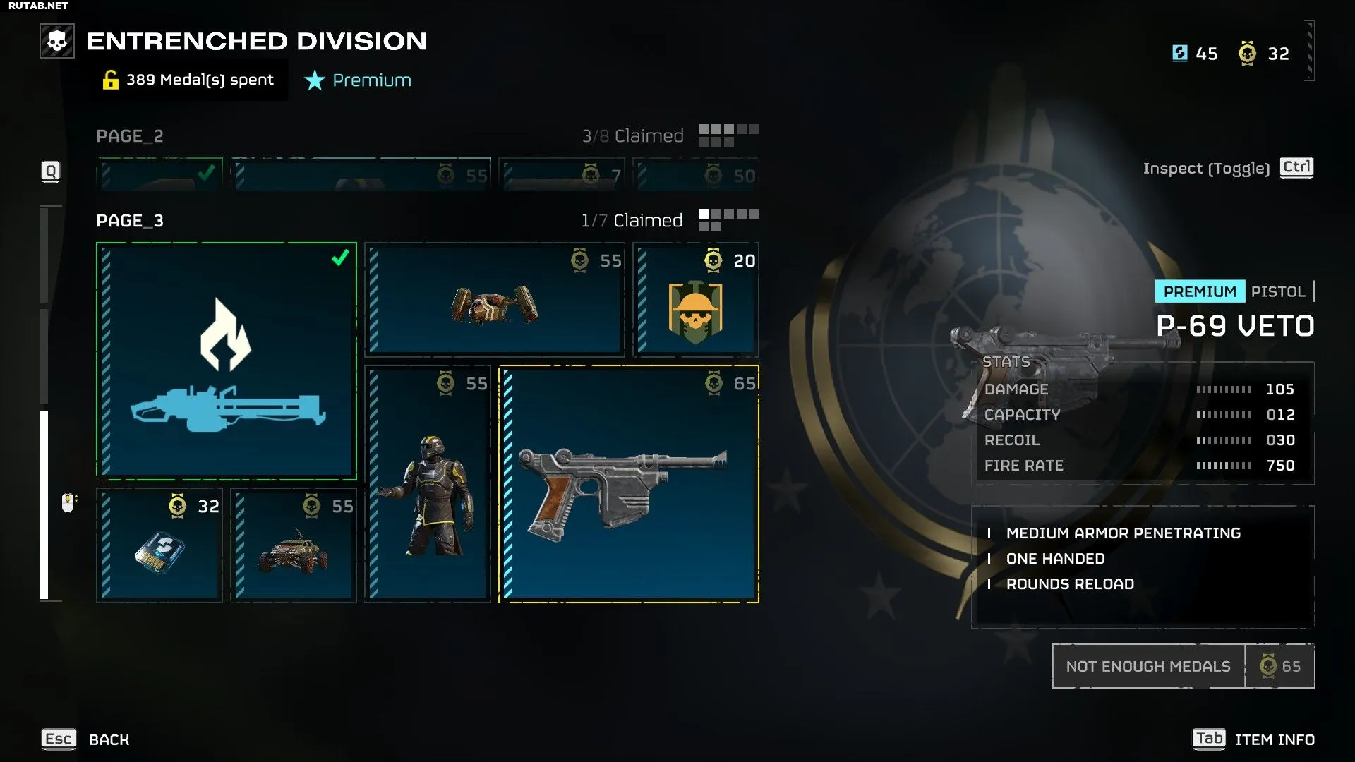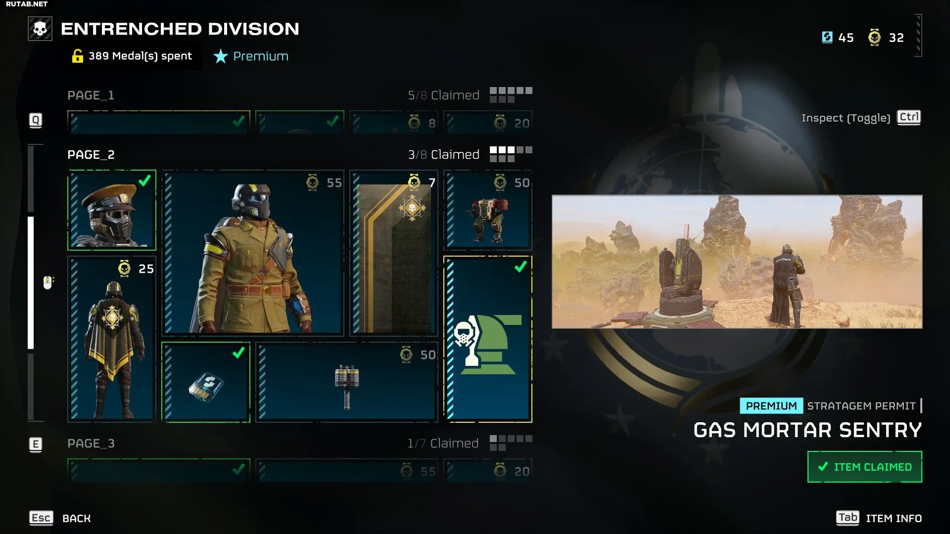 На первой странице варбонда «Укреплённая дивизия» представлены следующие предметы и их стоимость в Медалях: