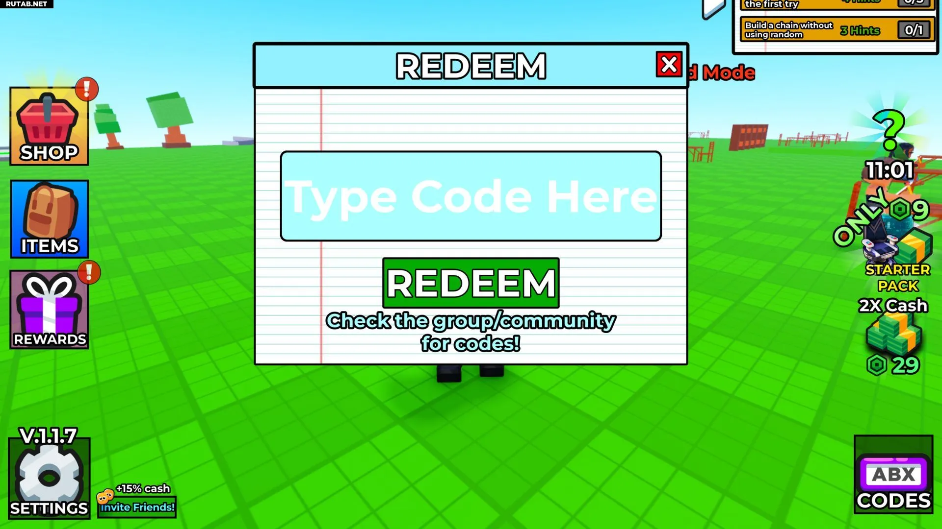 - Найдите кнопку для ввода кодов в правой части экрана (в главном меню или во время игры).
