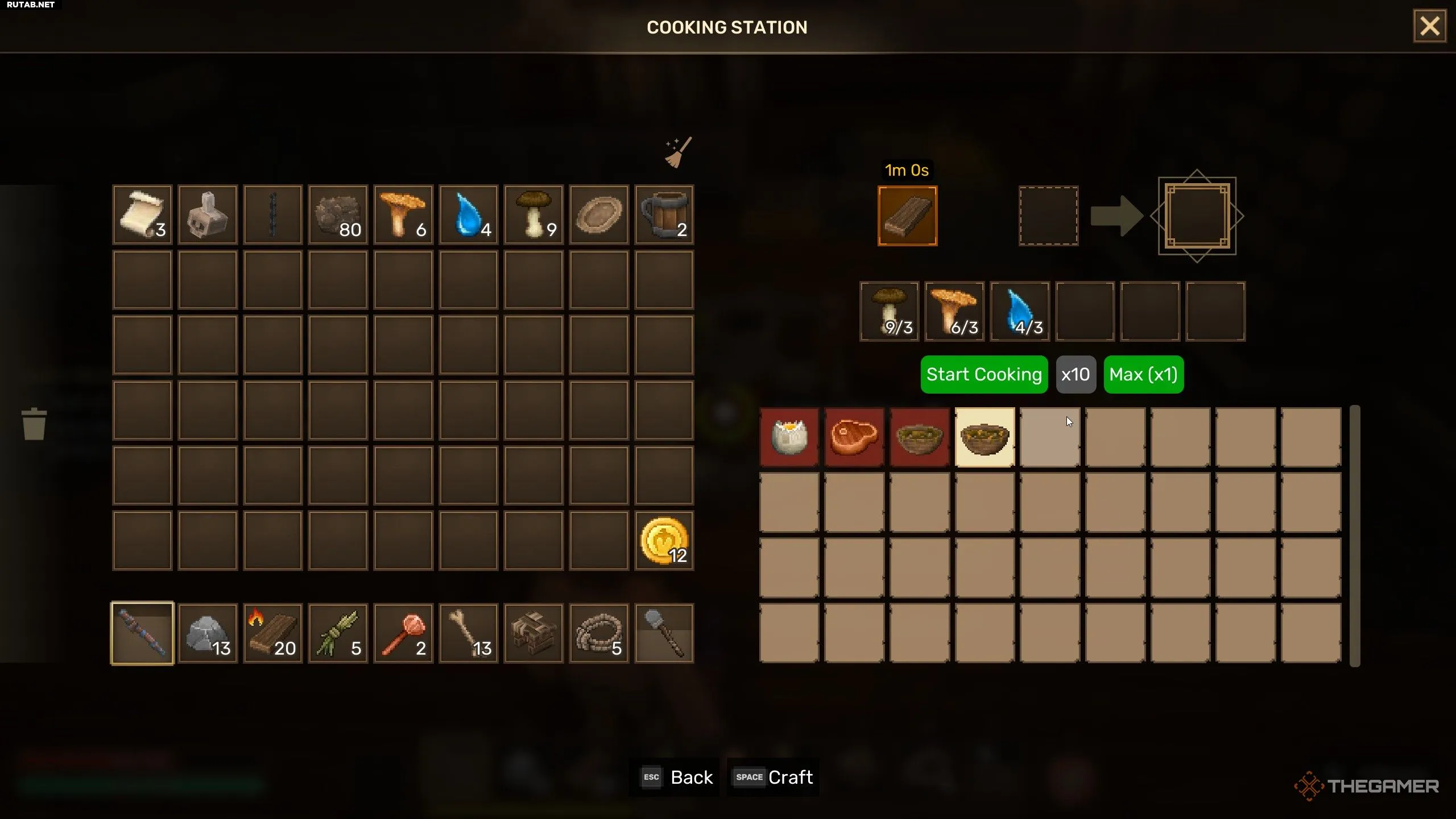 Для приготовления любого блюда из этих ингредиентов понадобится кухонная станция. Чтобы поддерживать огонь и готовить еду, не забывайте регулярно подбрасывать топливо. На станции отображаются все разблокированные рецепты, и вы можете приготовить любое блюдо, если в инвентаре есть необходимые компоненты.