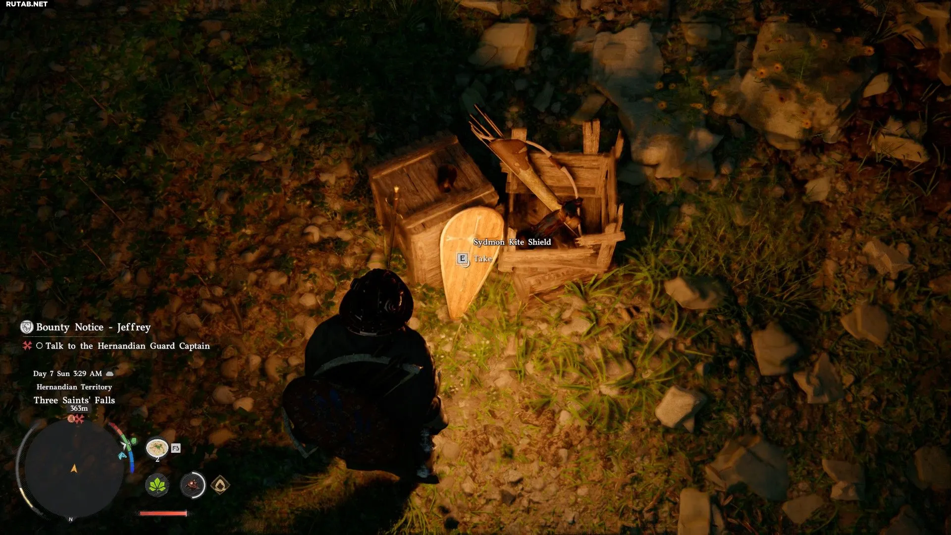 - Снаряжение часто можно найти в лагерях. Некоторые предметы также падают с поверженных врагов.