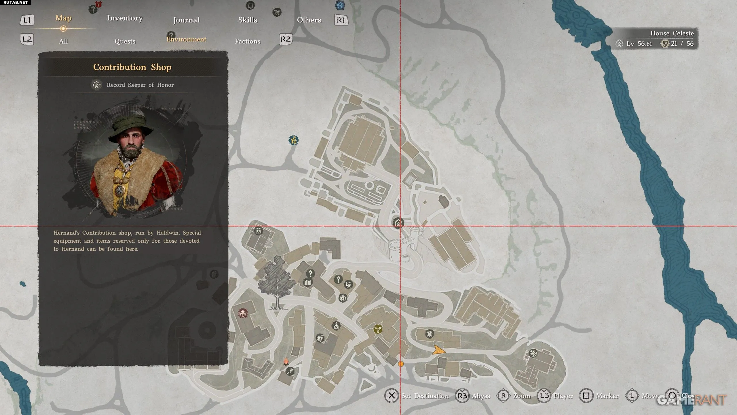 В каждом регионе есть свой Магазин пожертвований, расположенный в главном городе этой области. На территории Хернанда он находится в башне справа от главной дороги, ведущей к замку. Для доступа вам понадобится наряд жителя Хернанда или любой другой предмет, дающий право входа на территорию замка. В противном случае стража вас не пропустит.