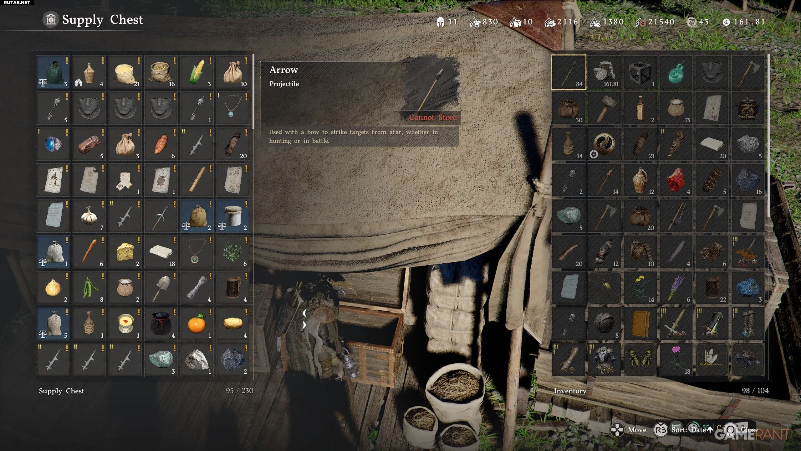 - Сундук автоматически собирает выброшенные письма, неисследованные рецепты, а также лут с побежденных врагов, который вы не подобрали до освобождения лагерей.