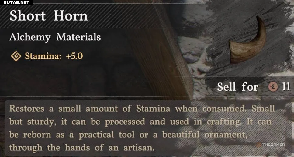 Короткие рога можно добыть с мёртвых коров. Вы найдёте несколько таких, выполняя основной сюжетный квест по поиску пропавших коров Бремера. Не забудьте освежевать всех коров, чтобы собрать рога.
