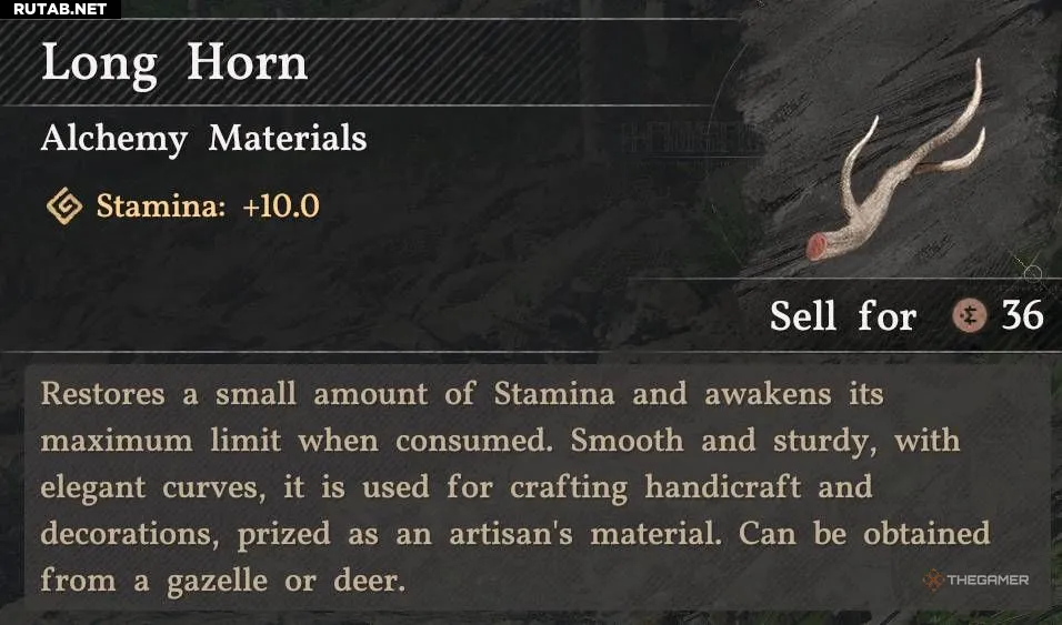 Длинные рога можно добыть, охотясь на оленей в дикой природе и снимая с них шкуру. Олени появляются по всему Пайвелу, хотя я нашёл их много в Чёрном лесу к западу от города Хернанд.