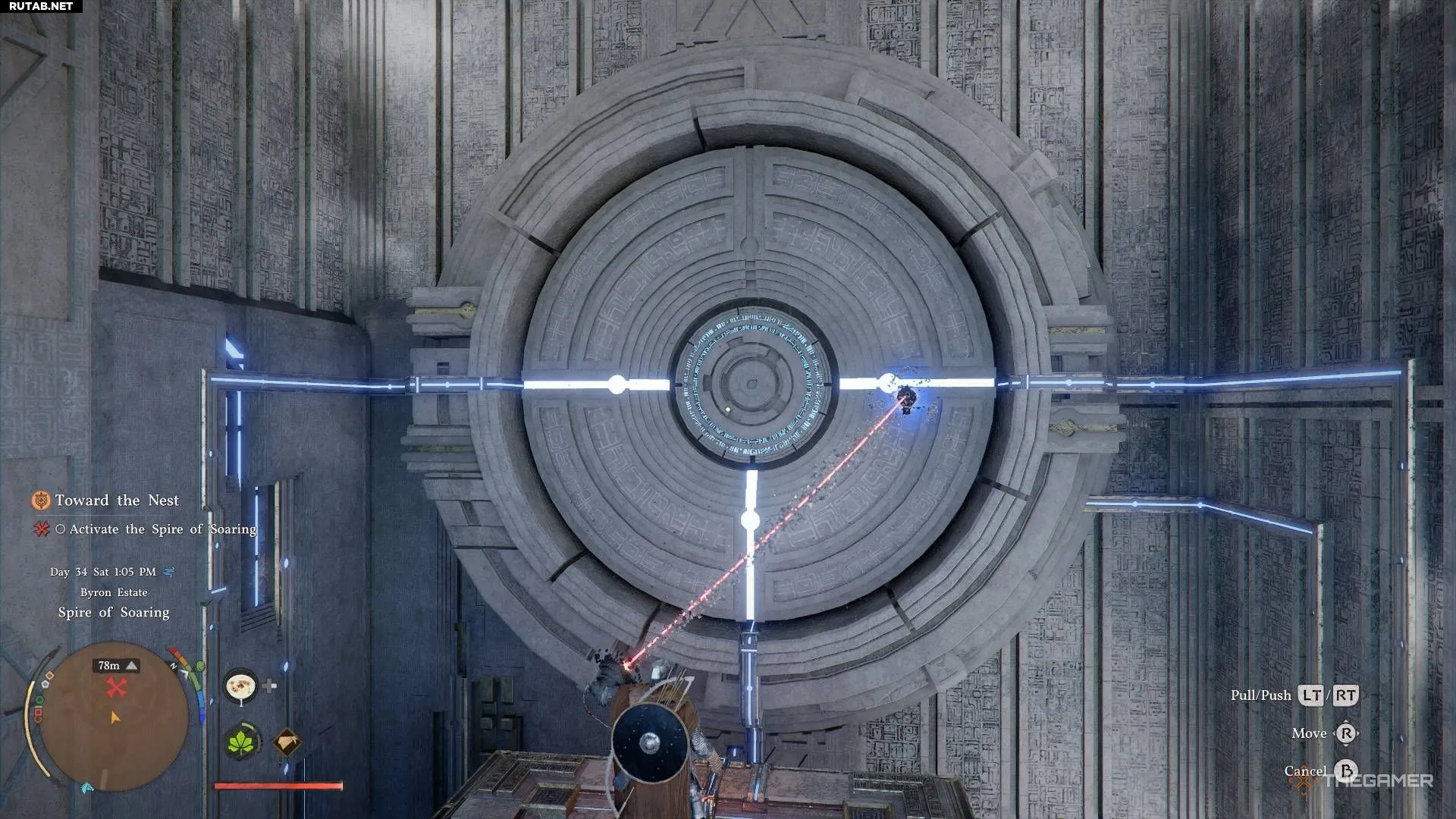 Когда вы впервые доберетесь до Небесного моста, вы увидите сломанное устройство, которое нужно починить. Игра не дает прямых указаний, как это сделать. Вот что нужно сделать: