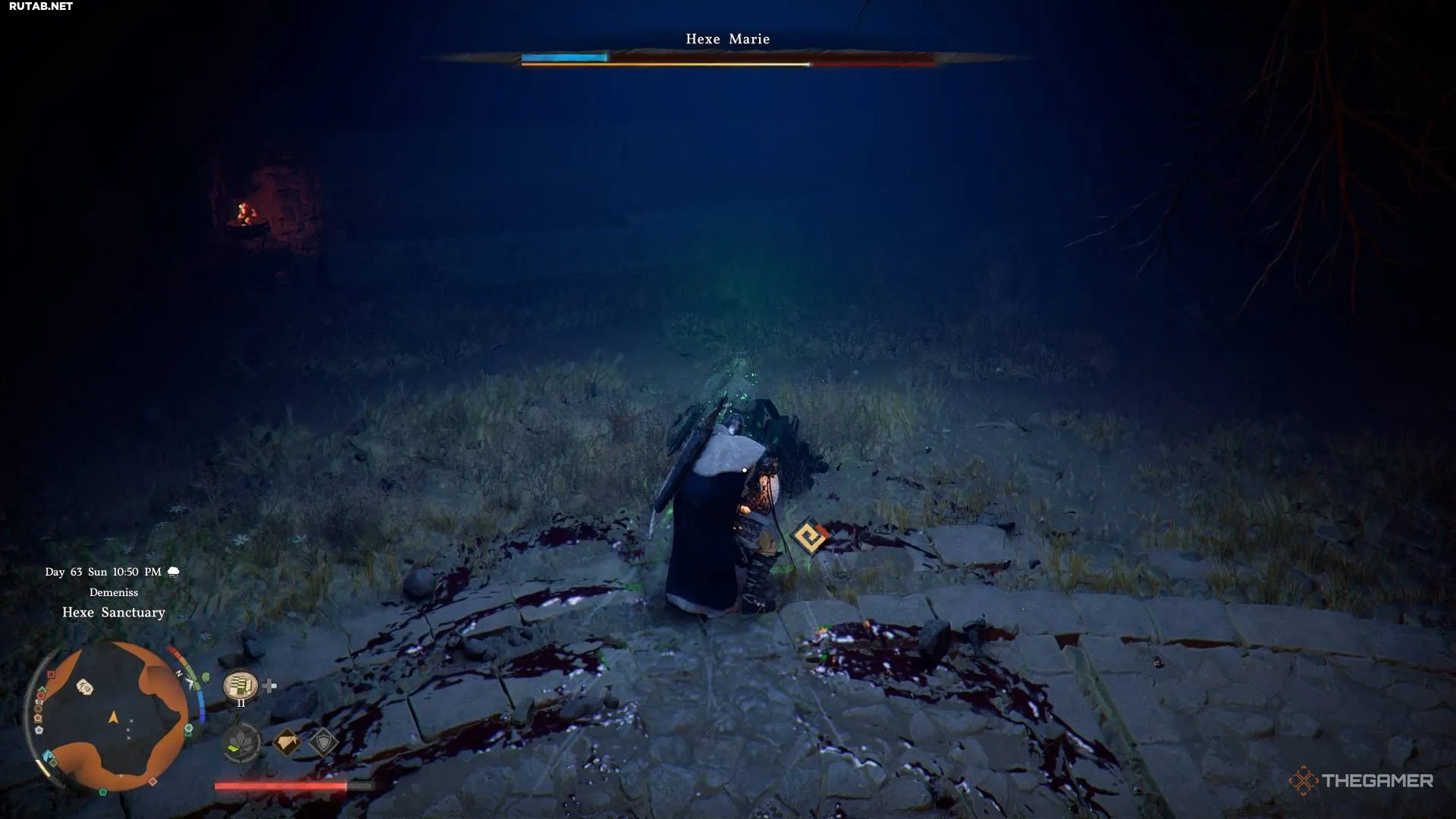 Босс Хексе Мари появляется в девятом акте «Crimson Desert». Перед схваткой с ней необходимо уничтожить окружающие тотемы, которые охраняют оживлённые её магией земляные твари. Даже эти враги бьют очень сильно, особенно элитные, поэтому к первому этапу стоит подготовиться.