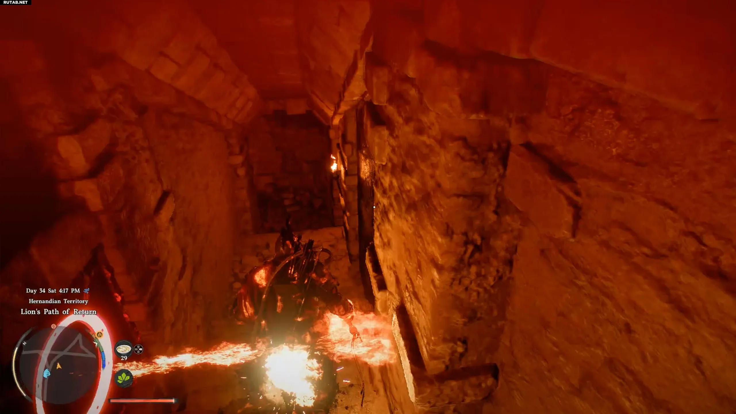 Продвигайтесь вперед, минуя огненные ловушки, и вы попадете в комнату, охраняемую парой врагов Бисмут. Расправьтесь с ними, чтобы собрать руду Бисмута и взять ближайшие пилюли Палмар с алтаря.