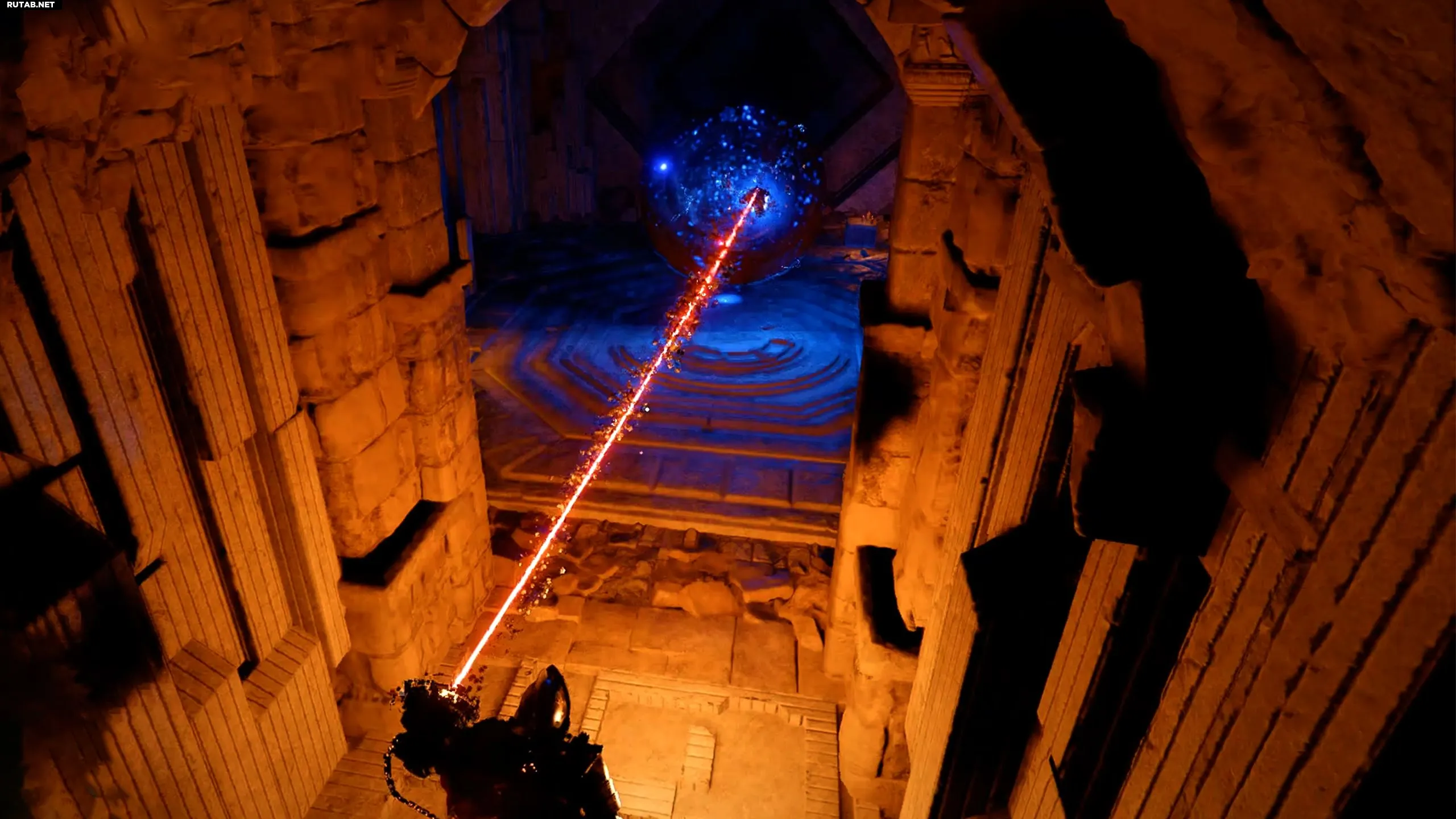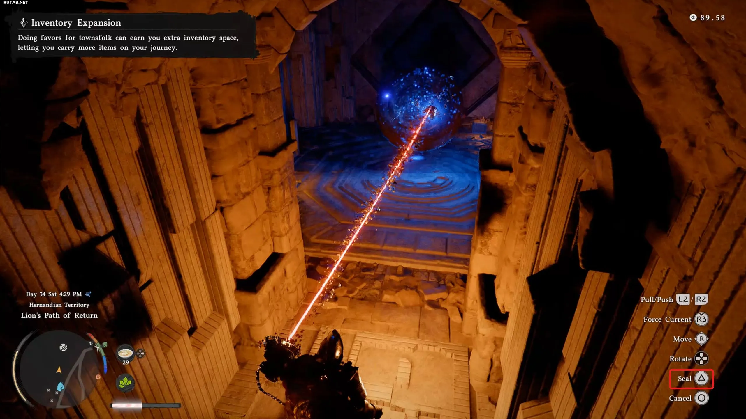 Затем встаньте перед барьером из Бисмута и сфокусируйтесь, чтобы собрать дух, а затем зарядите навык «Ладонь силы», удерживая кнопку, пока не появится сфера. Нацельтесь на сферу и отпустите кнопку, применив навык «Сфокусированная ладонь силы», чтобы разрушить барьер. За ним откроется небольшая комната с парящим диском.