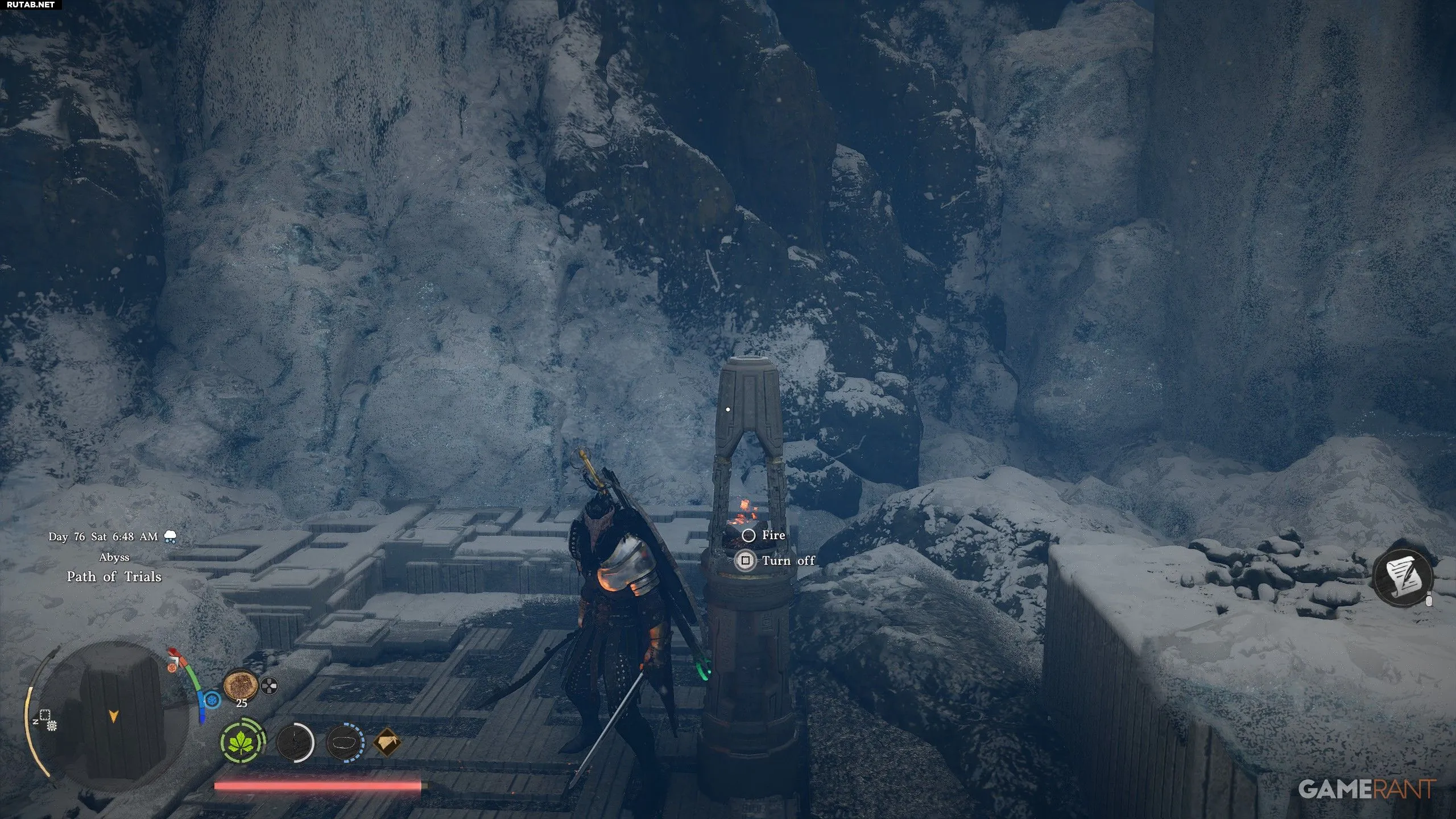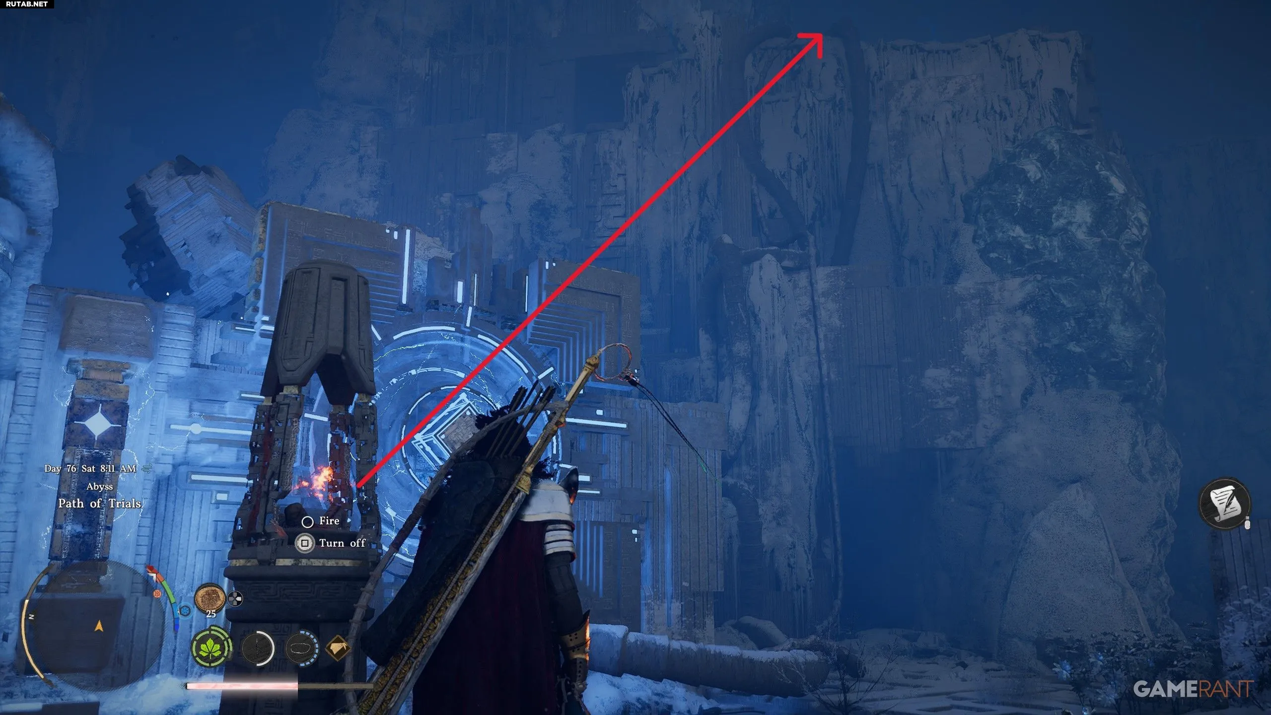 - Если батарея замерзла, встаньте у каменного фонаря на юге, подождите стрелу от его огня и выстрелите в батарею, чтобы растопить лед.