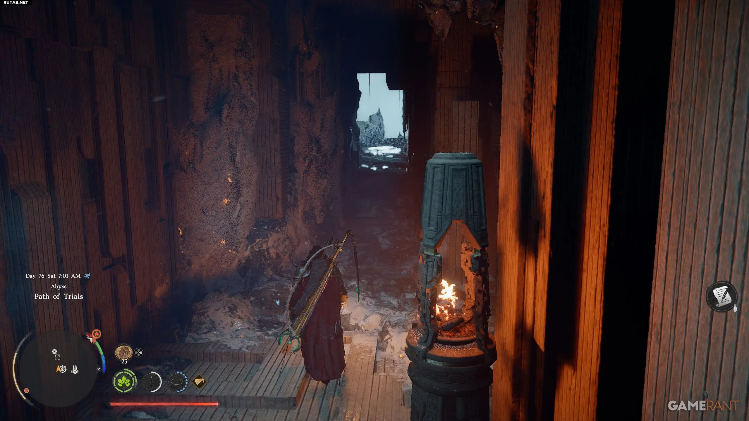- Доберитесь до северного конца озера, где найдете каменный фонарь. Зажгите его, чтобы согреться.