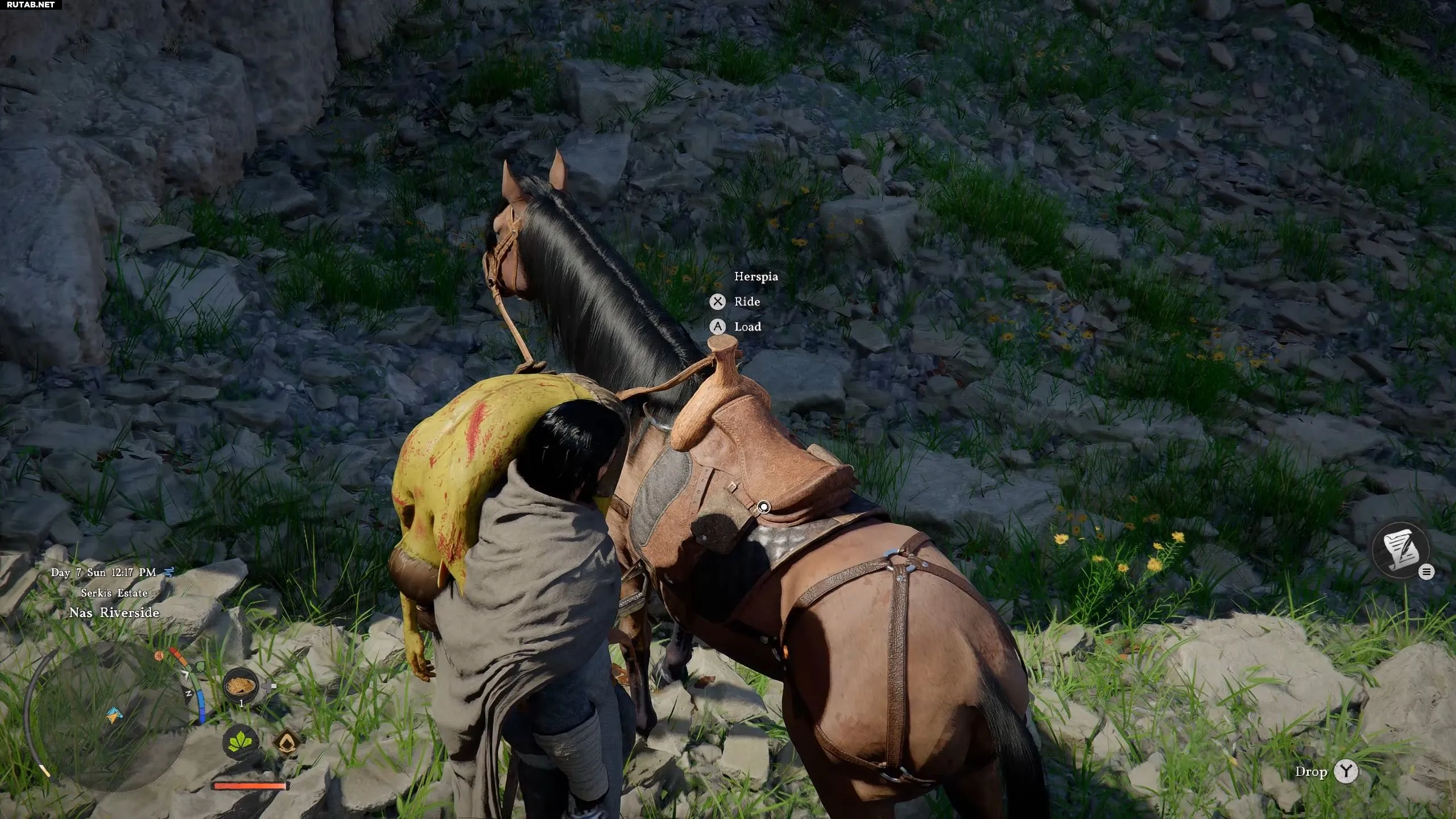 Чтобы погрузить тело, осмотрите лошадь, нажав соответствующую кнопку взаимодействия (например, «L1/LB» + «X/A» на консолях).