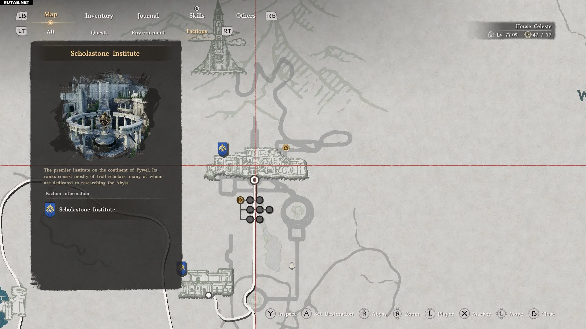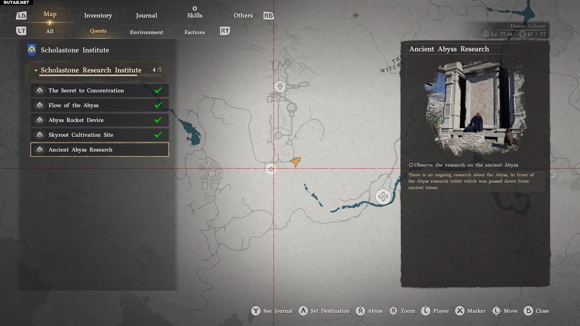 В мире игры много исследовательских станций, но первая, которую вы откроете, находится в Институте Сколастоун. Вы можете увидеть, есть ли в области точка для исследований, наведя на нее курсор. Если там есть значок древа исследований, значит, вы можете отправиться туда, чтобы делать открытия.
