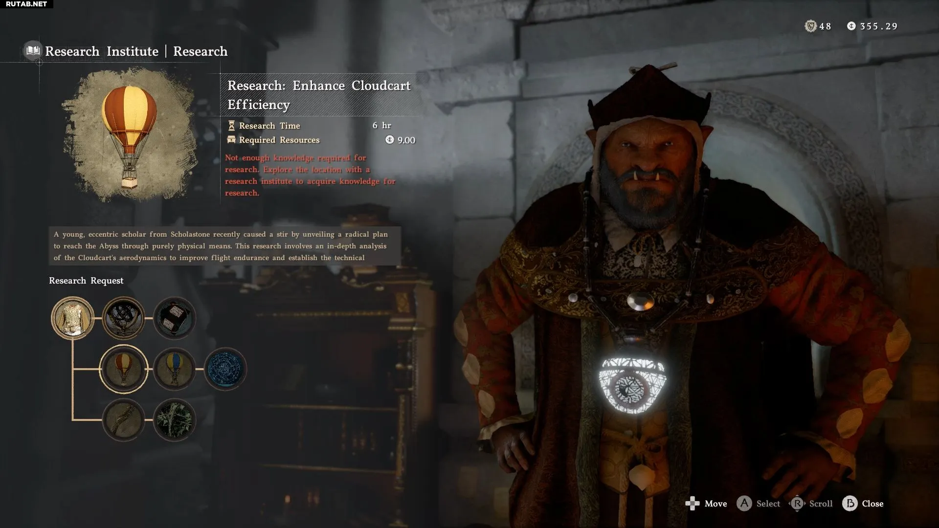 Например, чтобы разблокировать исследование Облачной тележки, нужно выполнить квест «Устройство ракеты Бездны». Осмотрите конструкцию, затем поговорите с отмеченным исследователем, чтобы узнать, что он изучает. Это завершит квест и откроет исследование Облачной тележки у Грунвара.