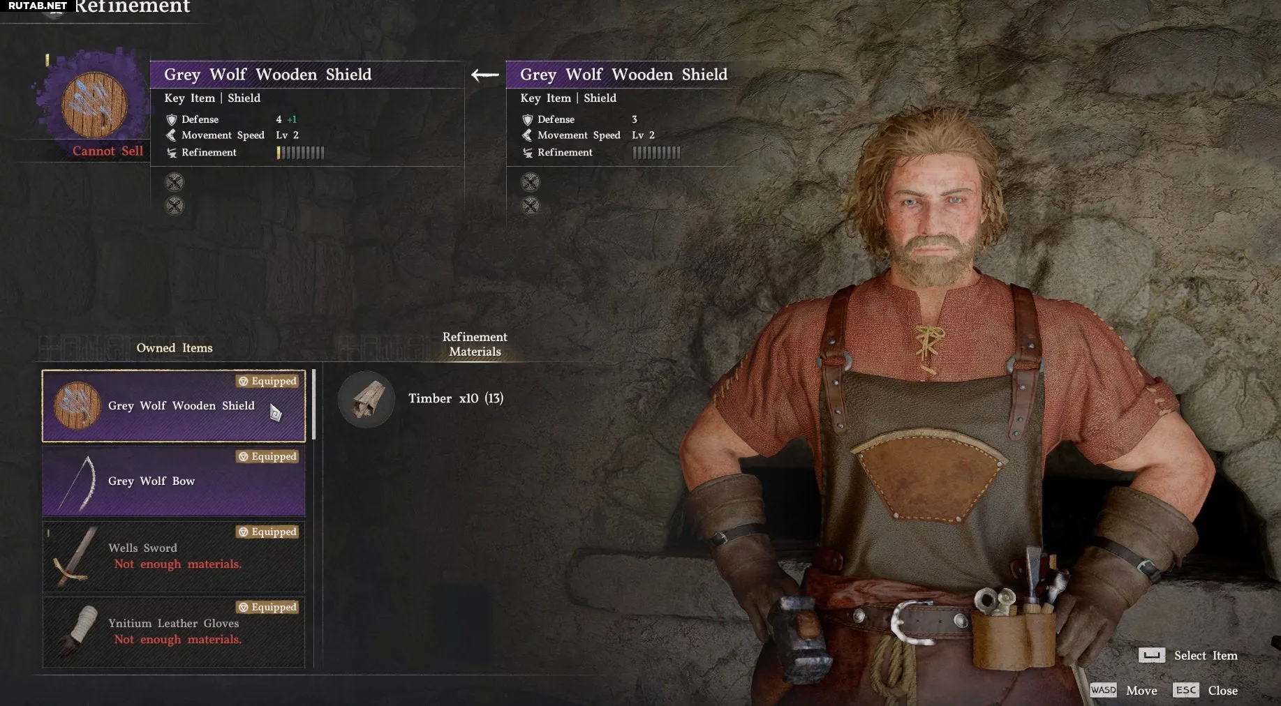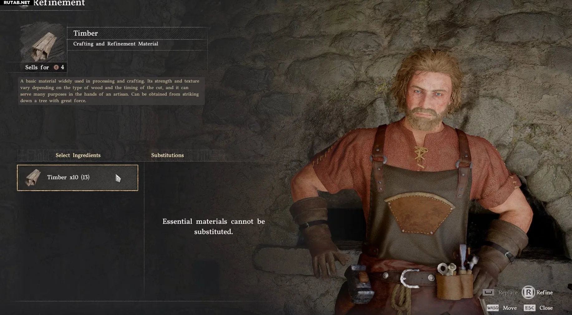 Выбрав предмет для апгрейда, вы попадёте на экран с материалами. В зависимости от требований, вы можете заменить некоторые материалы на другие. Однако «Основные материалы» (Essential Materials), такие как древесина для деревянных предметов, заменить нельзя.