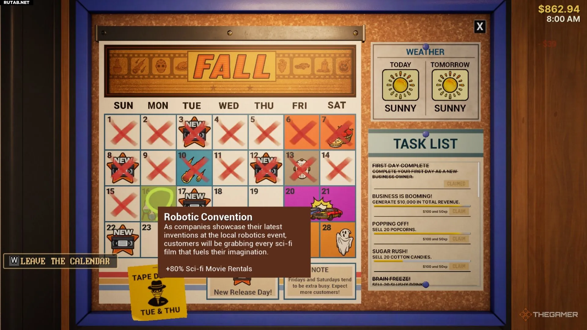 Как и можно предположить, пятницы и выходные всегда самые загруженные. Если вы видите, что предстоит дождливая пятница, стоит подготовиться к наплыву посетителей: убедиться, что в магазине достаточно видеокассет, полки с закусками заполнены, а напарник готов усердно работать.