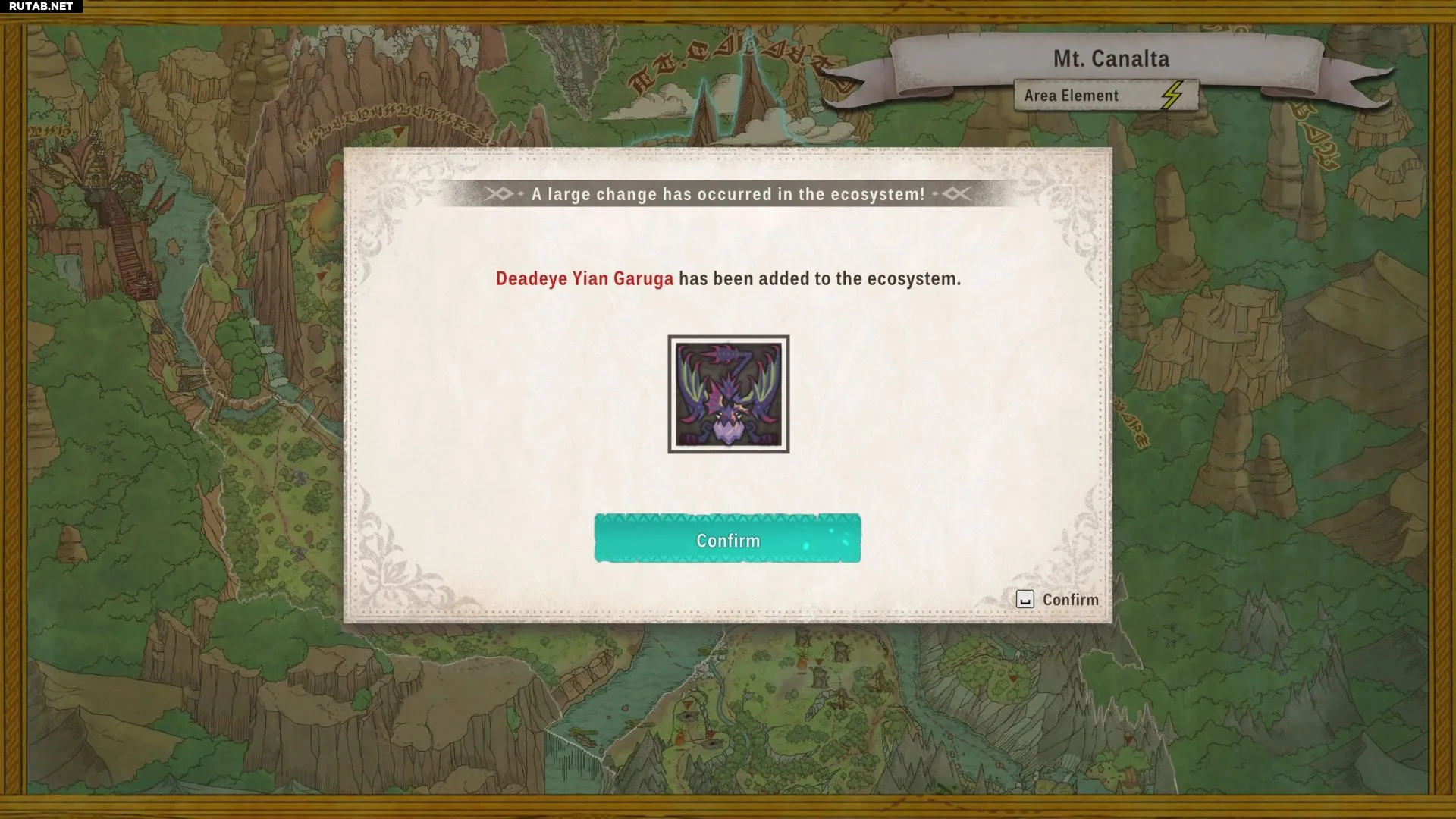После выпуска монстров появится экран, показывающий, как изменились их уровни экосистемы. Если произошли какие-либо мутации, они также будут объявлены здесь.