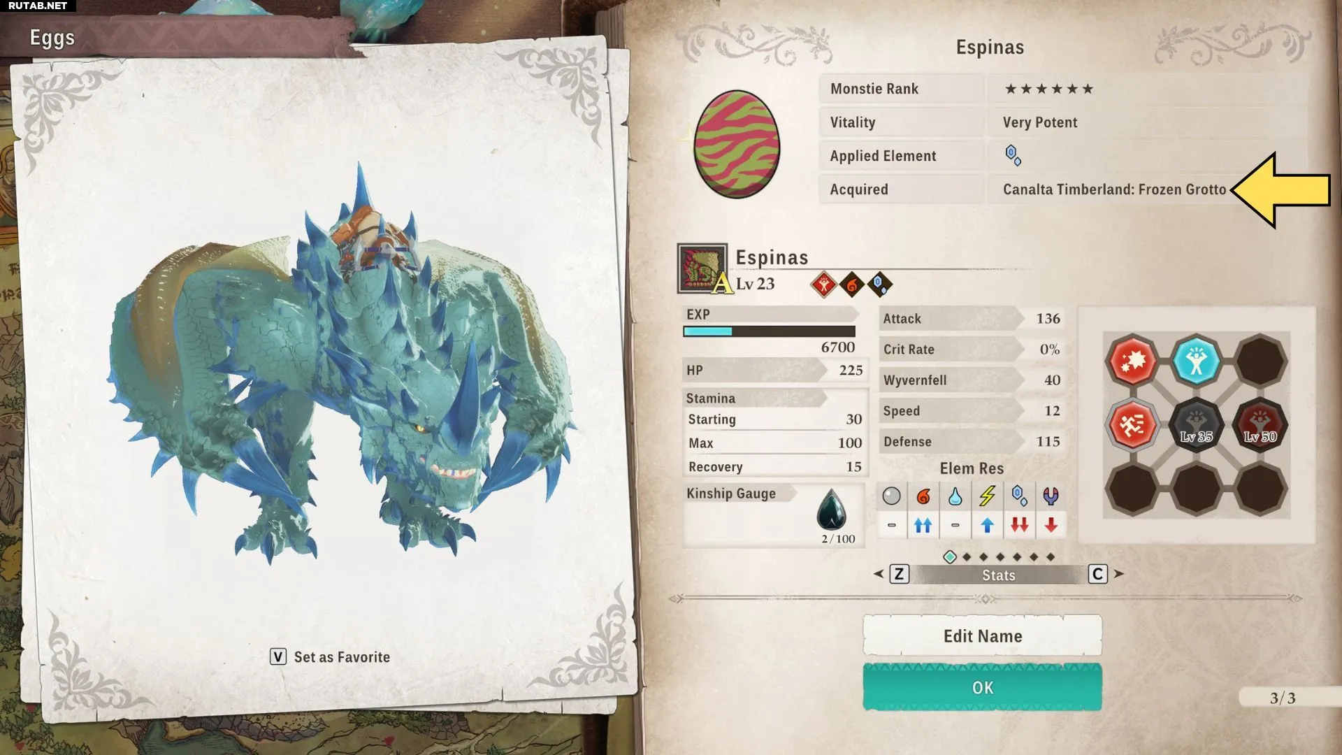 Монстр может получить любую из способностей яиц в регионе, если его ранг равен или выше ранга способности. Например, монстр S-ранга может получить любую способность яиц в регионе, в то время как монстр A-ранга — только способности ранга A или B.