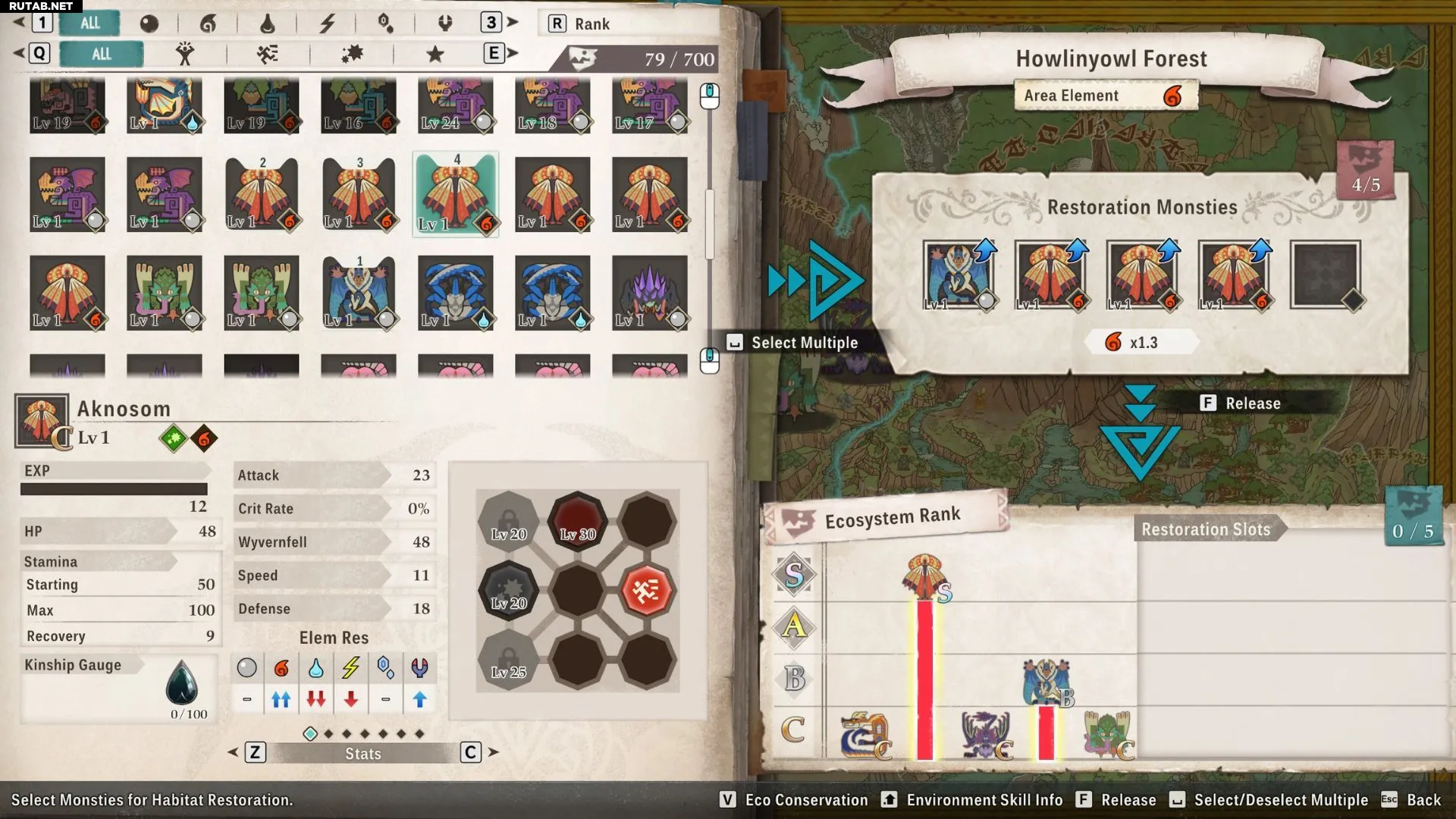 Выпуск монстров с более высоким уровнем экосистемы повышает уровень экосистемы их вида гораздо быстрее, чем выпуск монстра того же вида, но с более низким рангом.