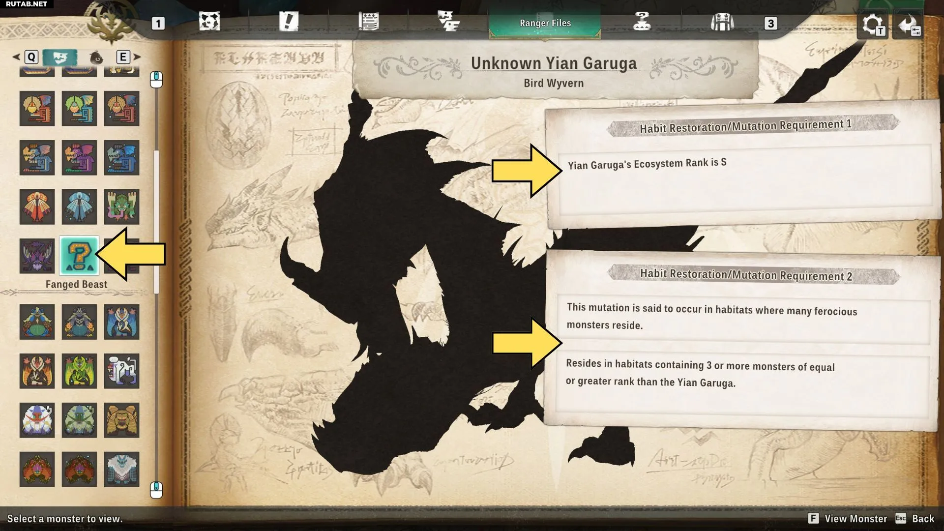Хотя игроки могут находить мутации естественным образом в процессе восстановления ареалов, подсказки о конкретных мутациях могут появляться в Файлах рейнджера. Эти подсказки будут отображаться как записи в Файлах рейнджера рядом с записью о монстре, из которого может быть получена новая мутация. На обложке таких записей будет изображён большой вопросительный знак.