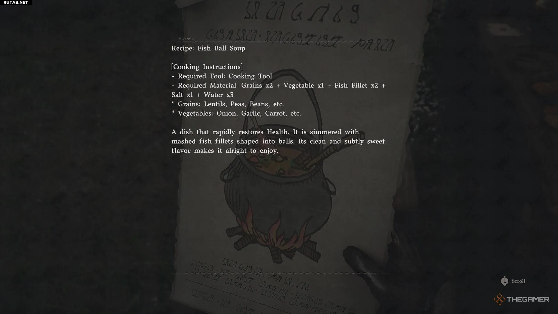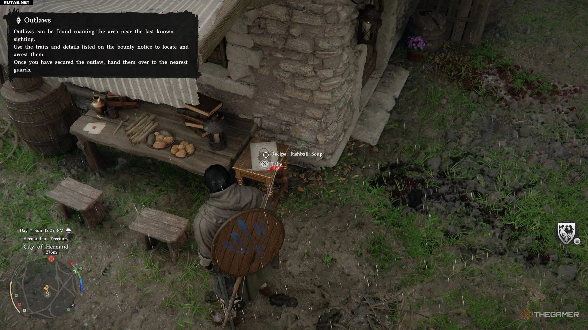 Рецепт супа с рыбными фрикадельками находится недалеко от констебльства Хернанда, где вы получаете свой первый контракт на поимку. Он лежит на столе рядом с каменным зданием.