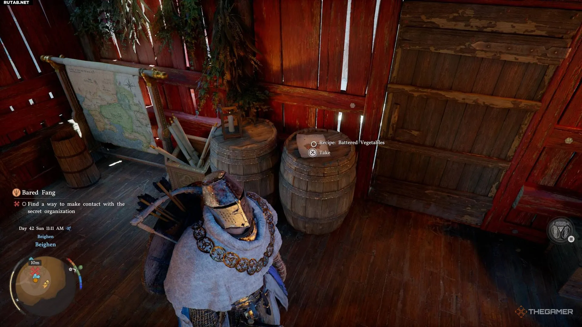 Рецепт овощей в кляре можно найти в небольшом доме в Бейгене, на бочке. Его легко пропустить, но с помощью карты и маркера вы его обнаружите.