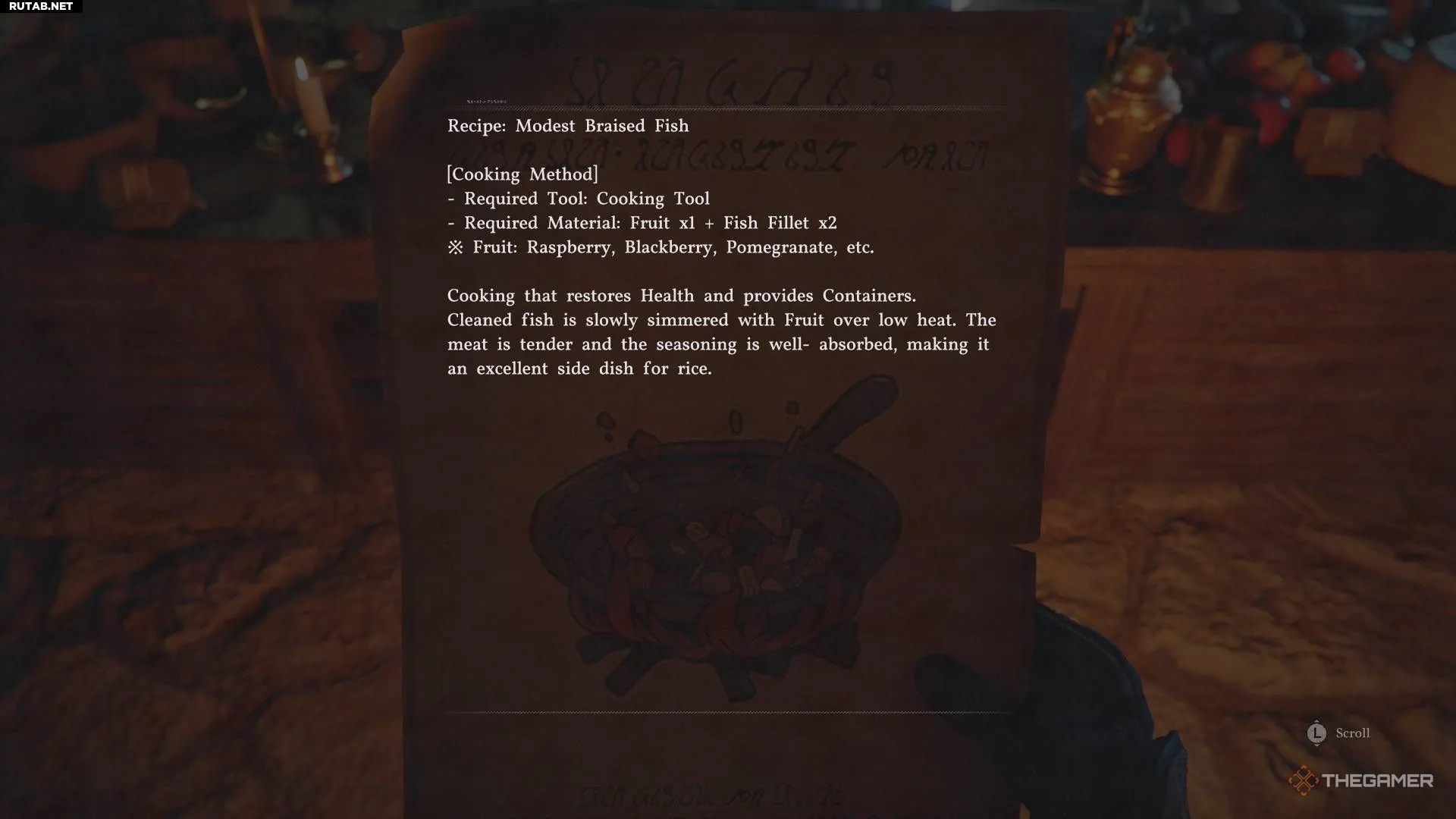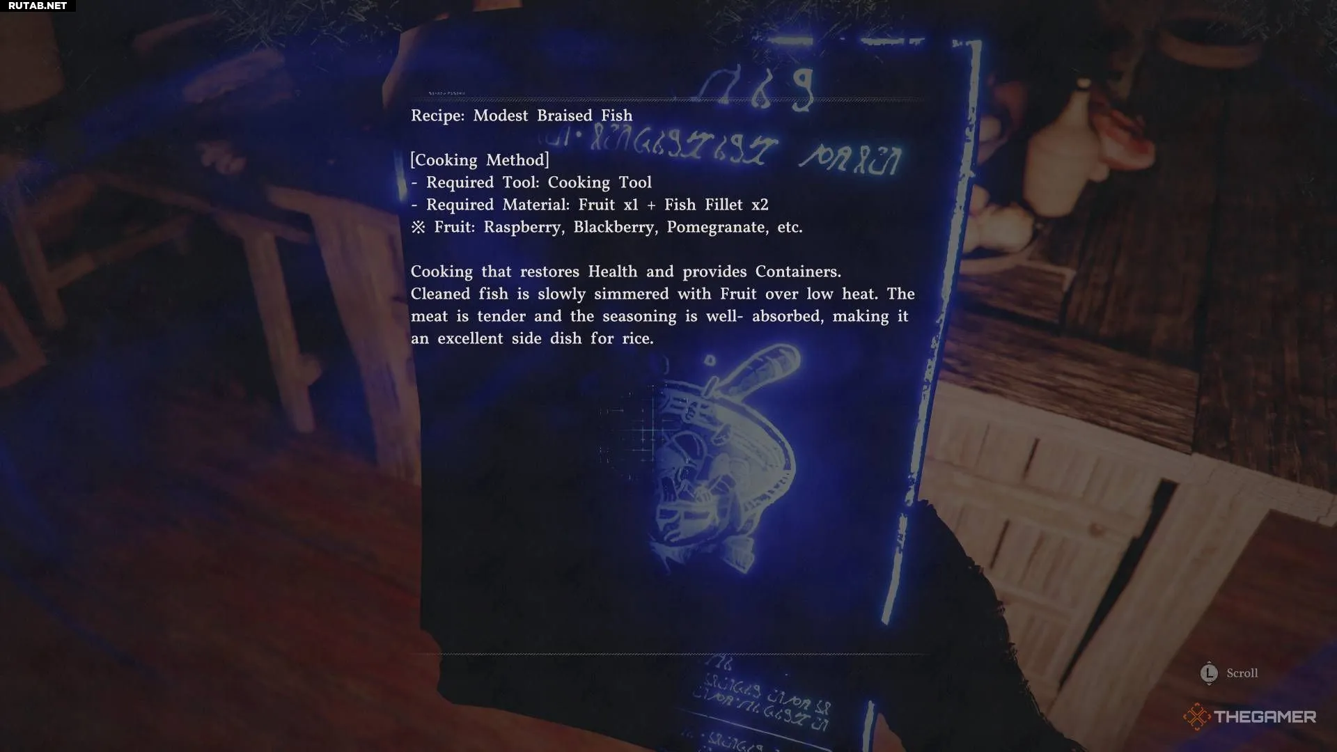Рецепт тушёной рыбы находится в случайном доме в Пайлуне, рядом с другими съестными припасами. Трудно указать на конкретный дом (в Пайлуне они выглядят очень похоже), поэтому я отметил его на карте. Ищите символ рецепта на вашей миникарте.