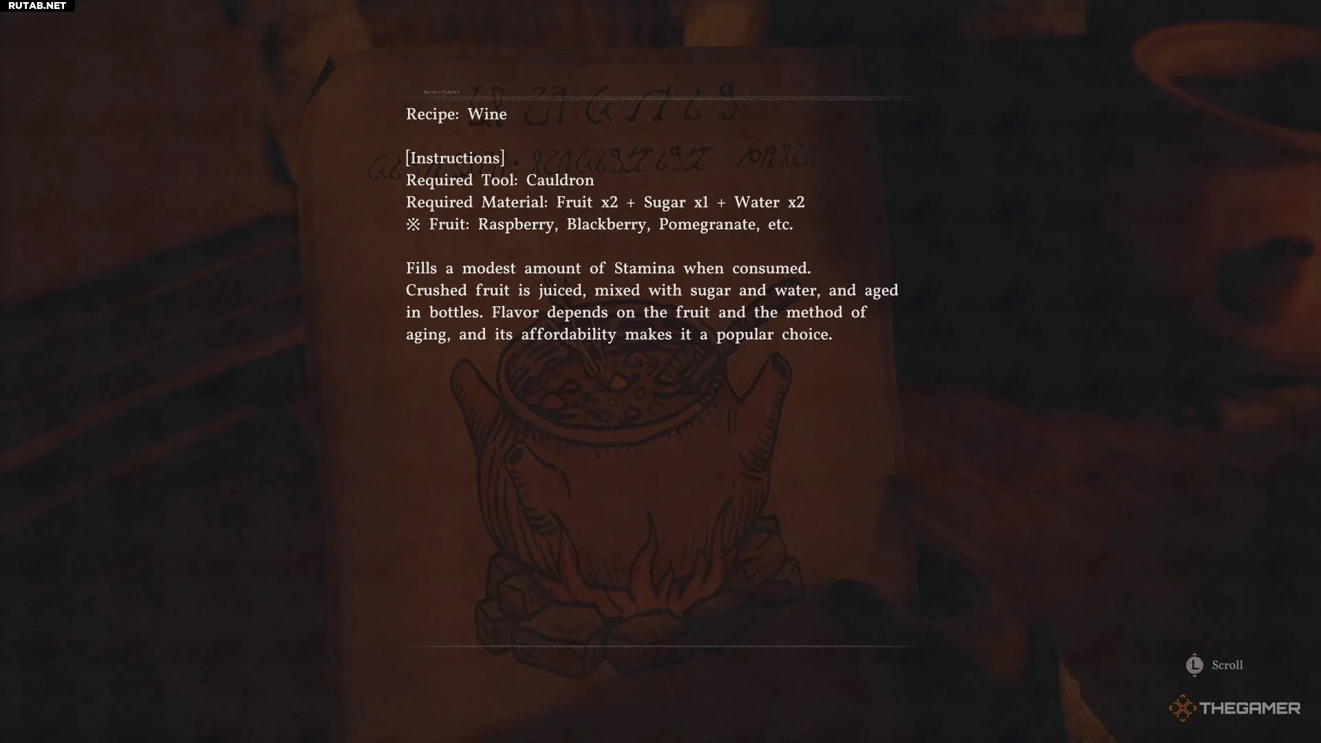 Готовить его нужно в котле. Вино восстанавливает умеренное количество выносливости.