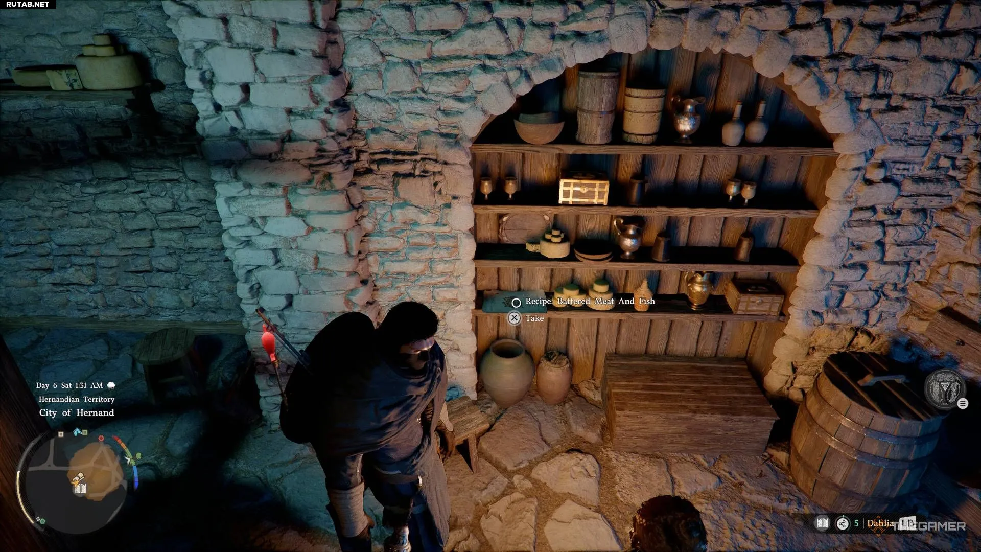 Рецепт «Мясо и рыба в кляре» можно найти в таверне Далии в Хернанде, прямо за её стойкой.