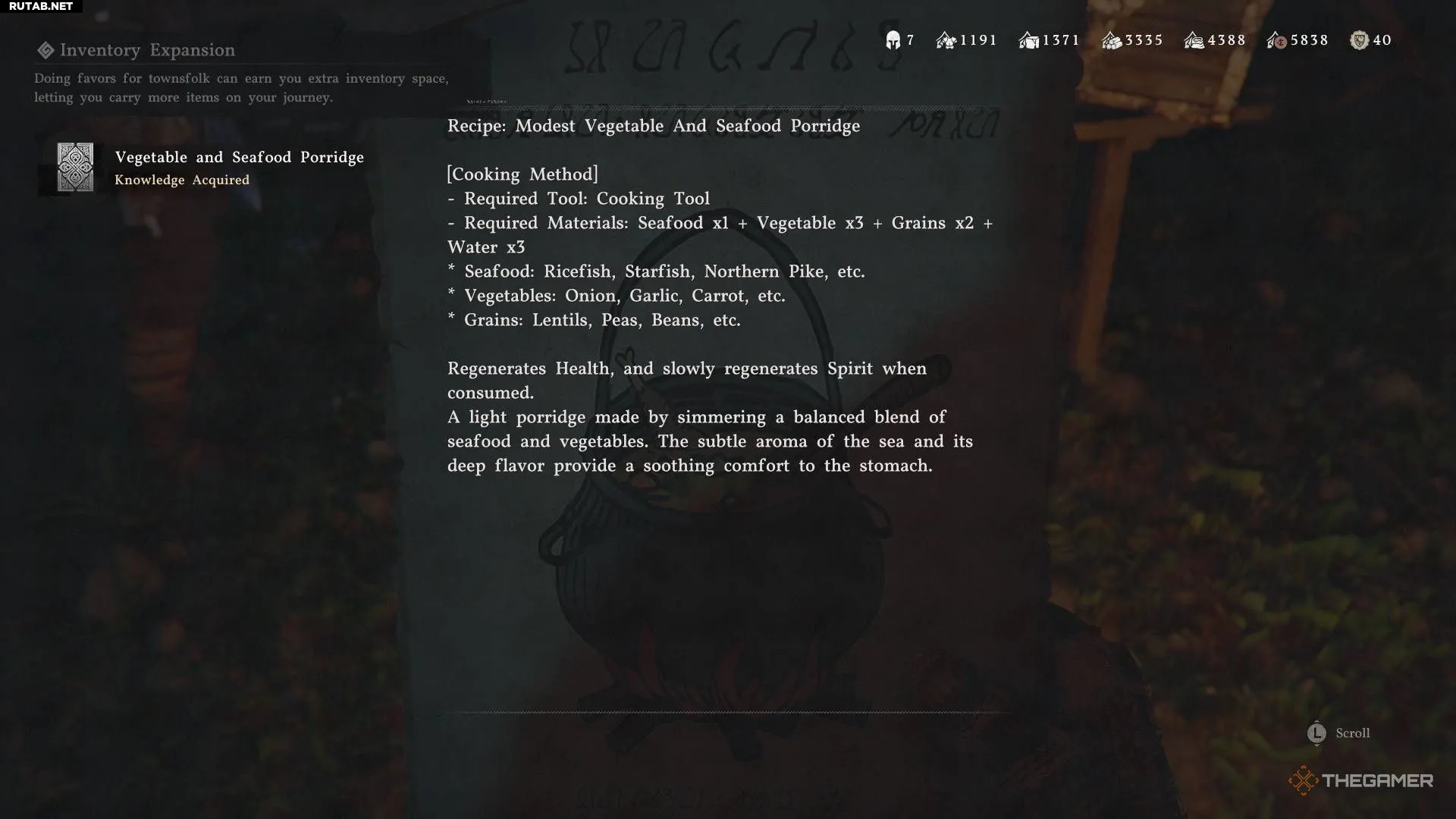 Это более сложный рецепт, но в результате вы получаете регенерацию здоровья, выносливости и духа в одном блюде.