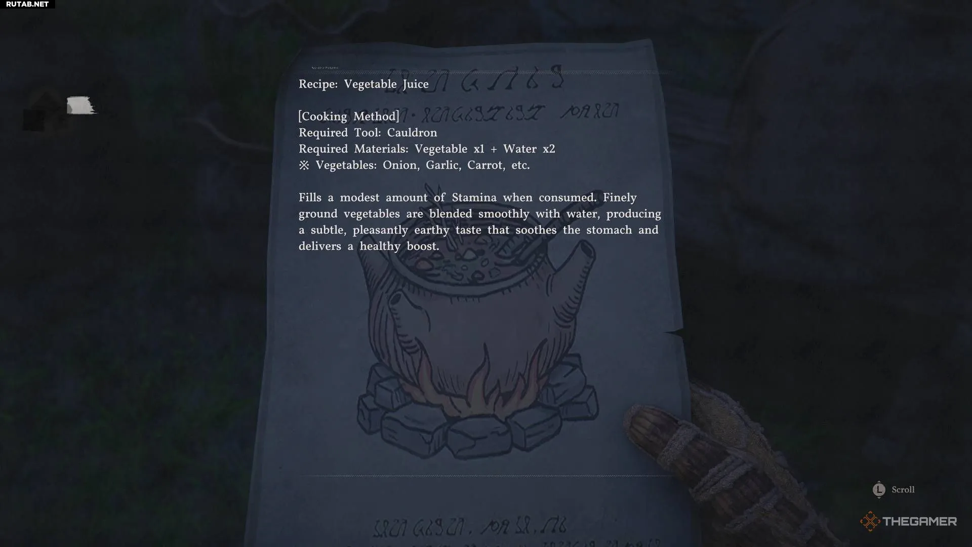 Рецепт овощного сока находится в деревне в лесу Поррорин, куда можно попасть только после выполнения квеста для Шай в лесу.