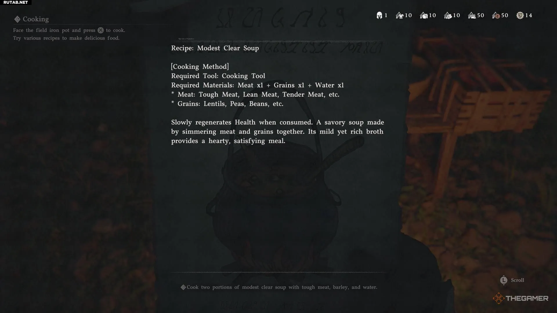 Рецепт мясного супа можно купить у трактирщика в Пайлуне после завершения седьмого акта.