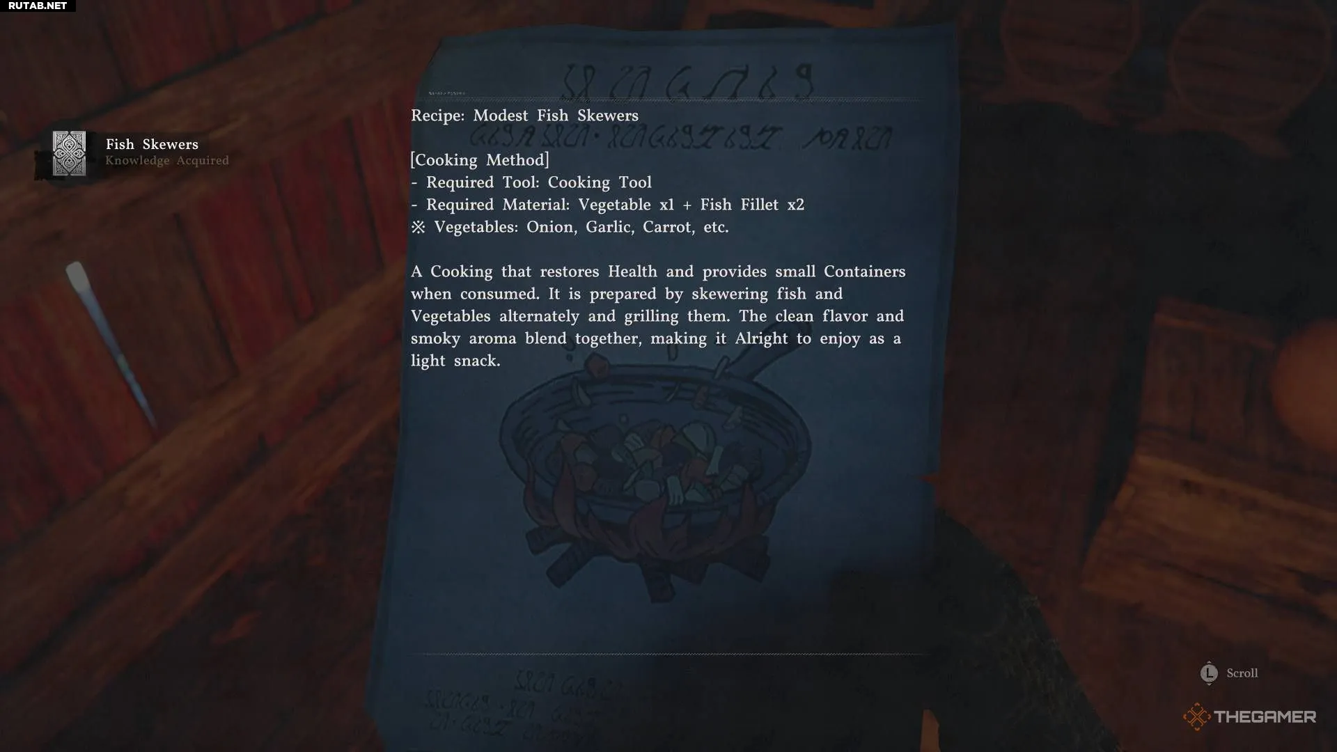 Рецепт мясных шашлычек я нашёл во время исследования Кальфада, в рамках сюжетного задания, которое приводит вас туда. Он лежал на столе.