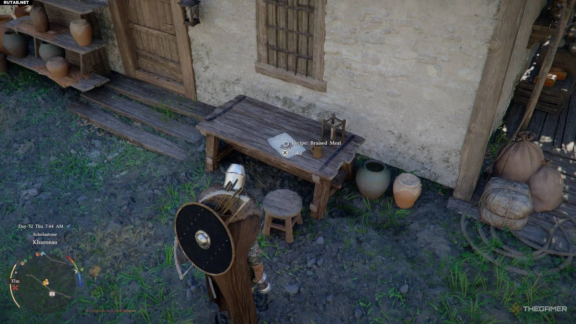 Рецепт тушёного мяса находится в таверне в Харонсо, под ветряной мельницей на столе.