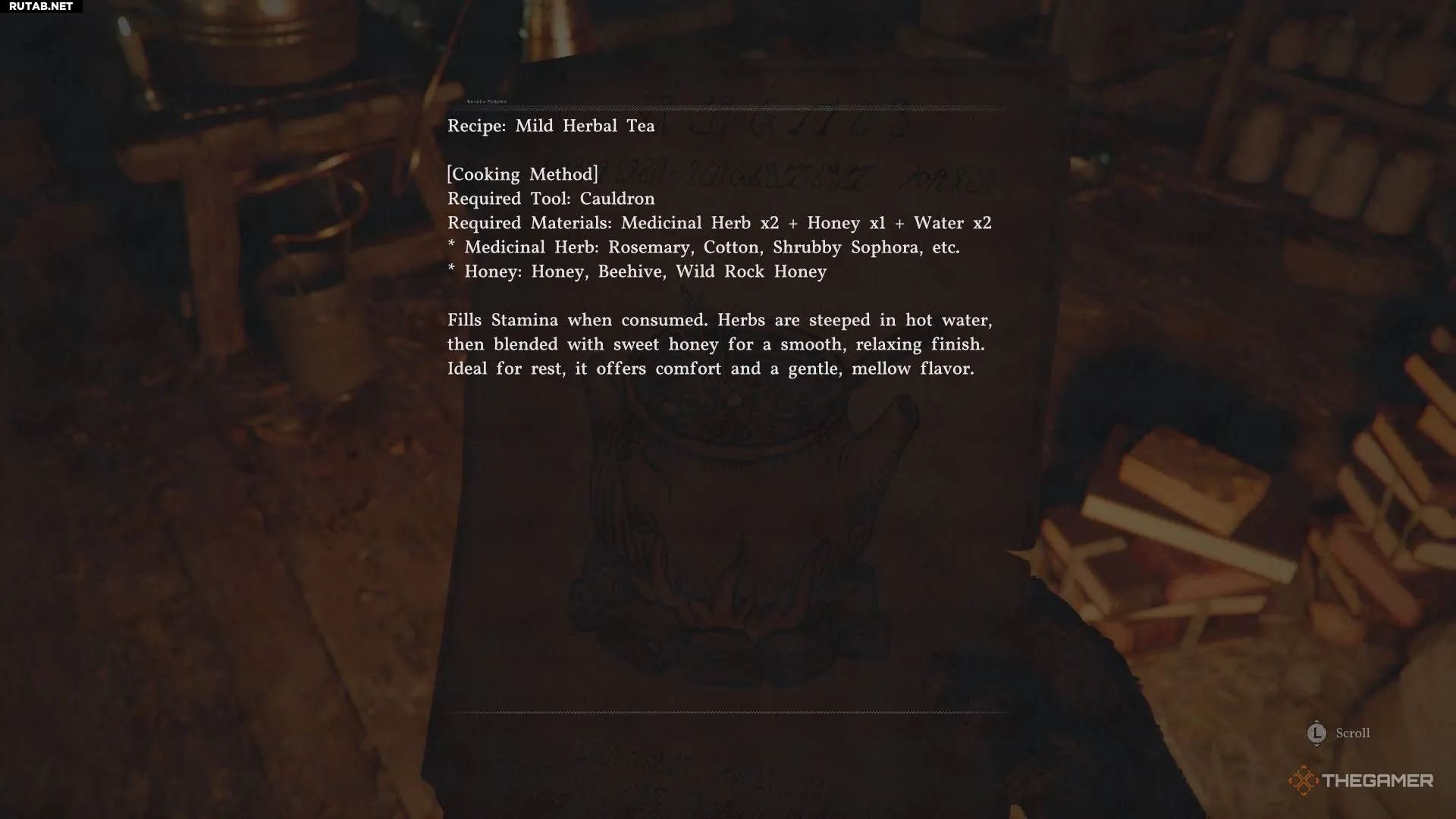 К лекарственным травам относятся такие ингредиенты, как хлопок и розмарин, которых много в Хернанде. Лёгкий травяной чай полностью восстанавливает шкалу выносливости.